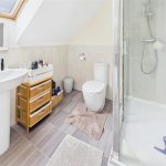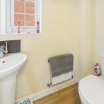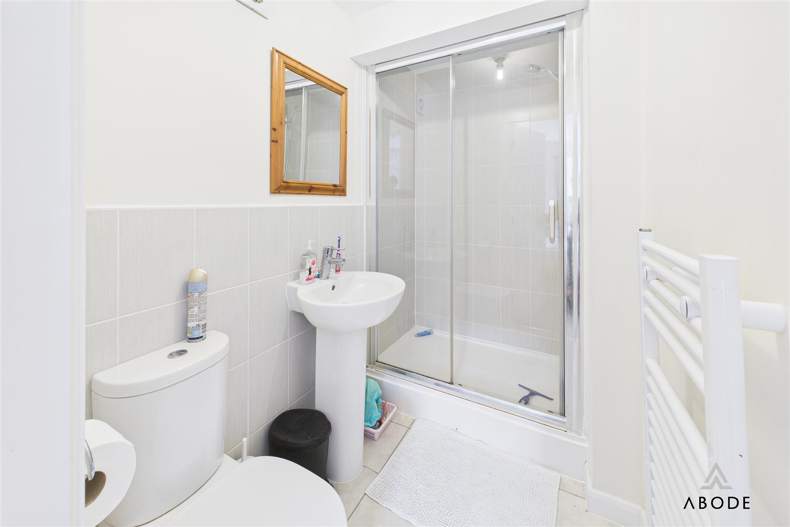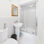 Shower, low flush wc, wash hand basin and radiator.