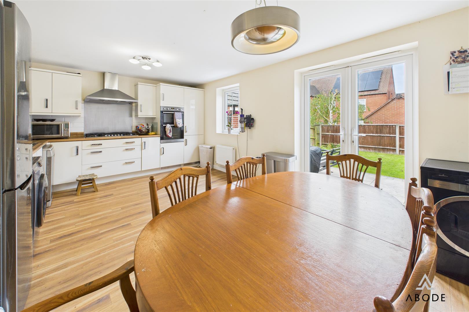 Fitted units with work surfaces and a sink and drainer unit. Fitted electric double oven and gas hob with extractor, plumbing and spaces for a washing machine and dishwasher, space for a fridge freezer. Upvc double glazed window and doors onto the garden, and two radiators.