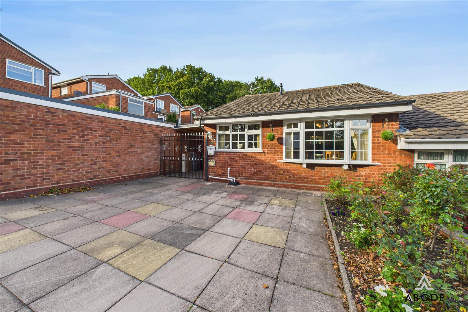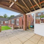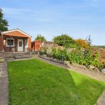 Positioned to the rear of the garden, this versatile brick-built outbuilding is ideal as a garden office or hobby room. It features a vaulted gable-ended roof, UPVC double glazed windows to the front and sides, frosted glass window to the front elevation, and UPVC entry door. The pitched roof with PVC fascias and canopy open area enhances its appeal, offering views across the garden. To the rear is a useful storage space, while the adjoining low-maintenance garden is mainly paved with soil beds, decorative borders, and timber fencing for privacy.