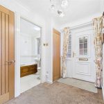 Accessed via a UPVC double glazed frosted side entry door, the hallway provides access to a useful utilities cupboard housing the consumer unit, electric and gas meters. Additional features include a central heating radiator, smoke alarm, TV aerial point, eye-level shelving, loft access via hatch, and internal doors leading to the main rooms.