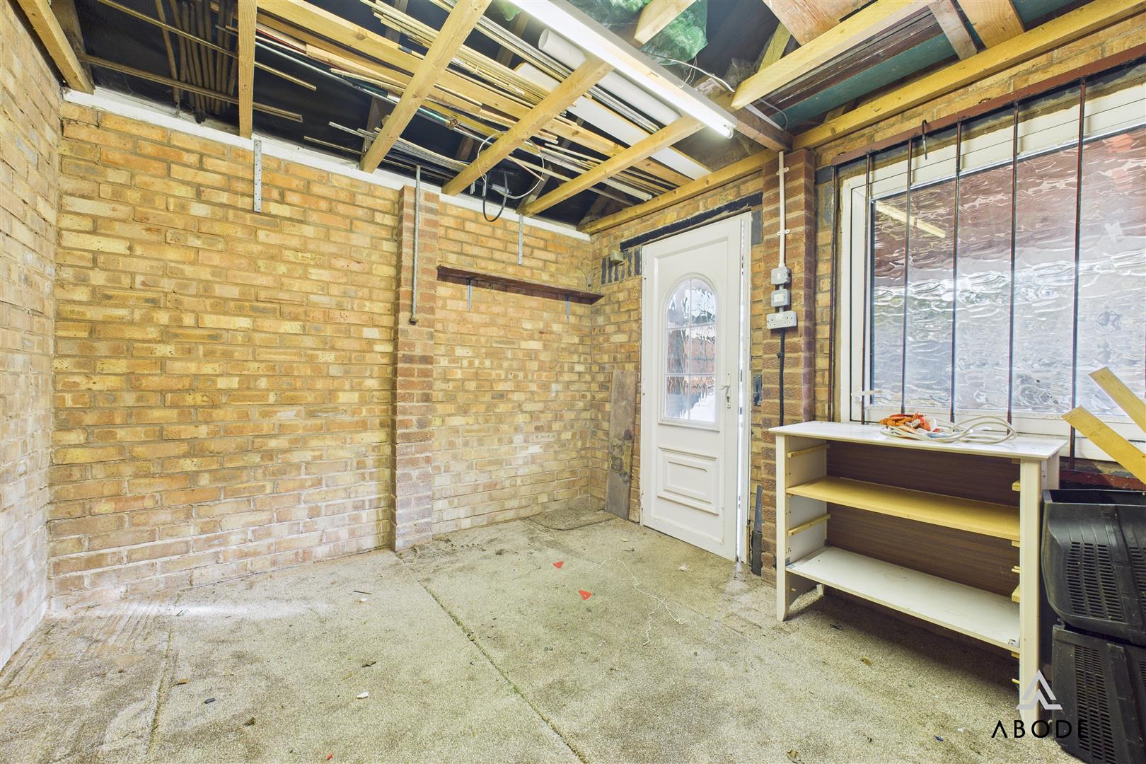 A large brick-built garage with pitched roof and steel RSJ support. Featuring three UPVC double glazed side windows, it offers excellent natural light, making it perfect as a workshop, garage, or storage area. The property also includes an up-and-over front door, UPVC entry door, multiple power sockets, and lighting.