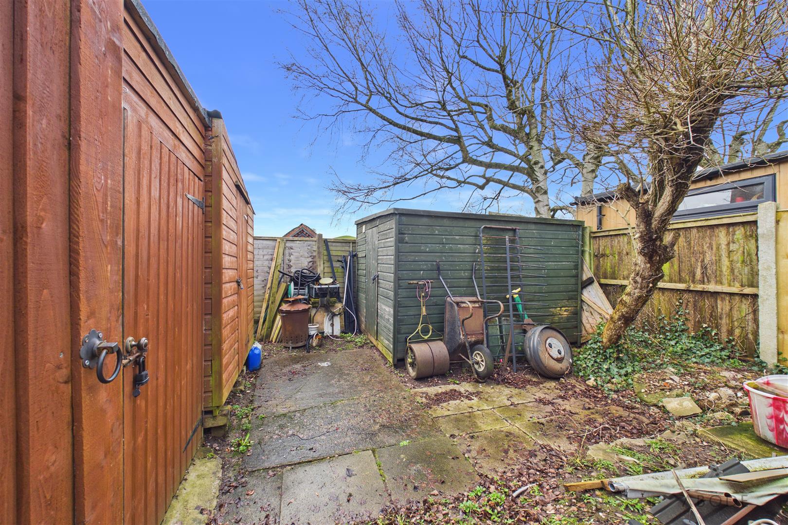 To the front, the driveway provides ample off road parking for numerous vehicles, with side access to the rear garden. To the rear the garden is mainly laid to lawn, with patio area ideal for entertaining. Pond, outside water tap and sockets, and enclosed area with three sheds. Distant views over the surrounding countryside.