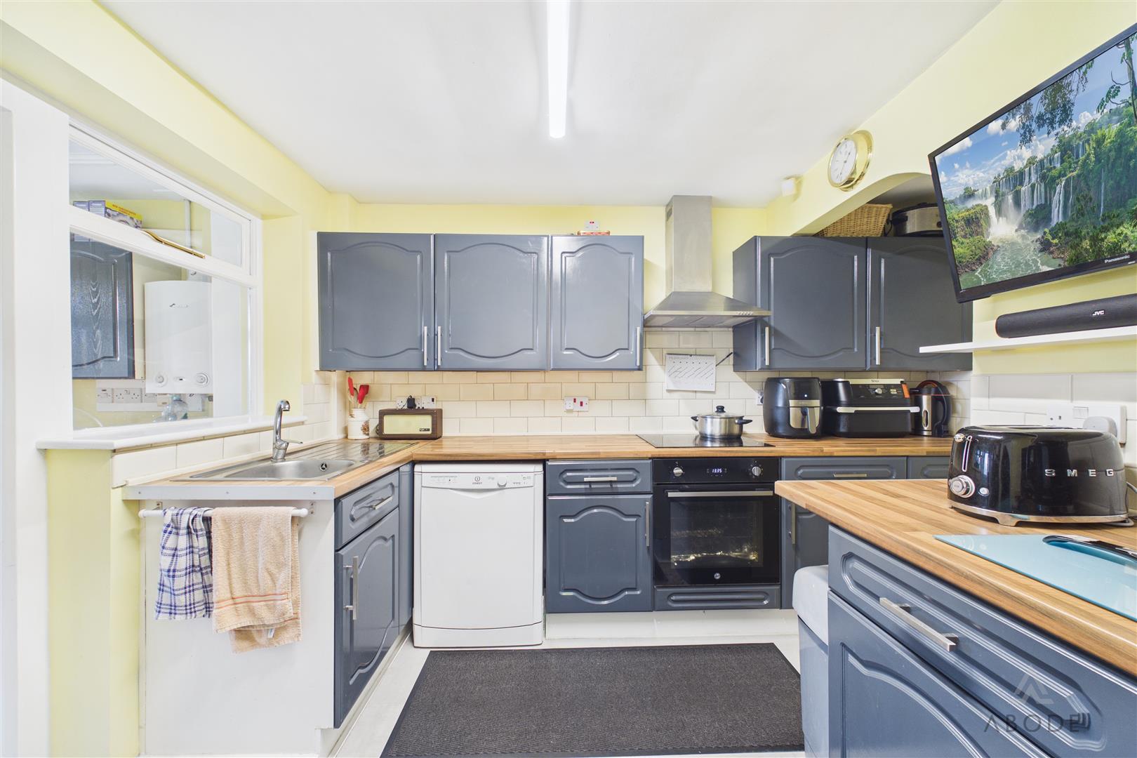 Double glazed window to the rear elevation and door leading out to the garden, central heating radiator, space and plumbing for a washing machine, fridge and tumble dryer with complimentary worktop, eye level storage cupboard. Housing the boiler, loft access.