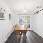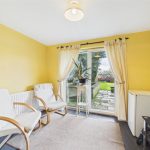 Central heating radiator, sliding patio doors leading out into the garden.