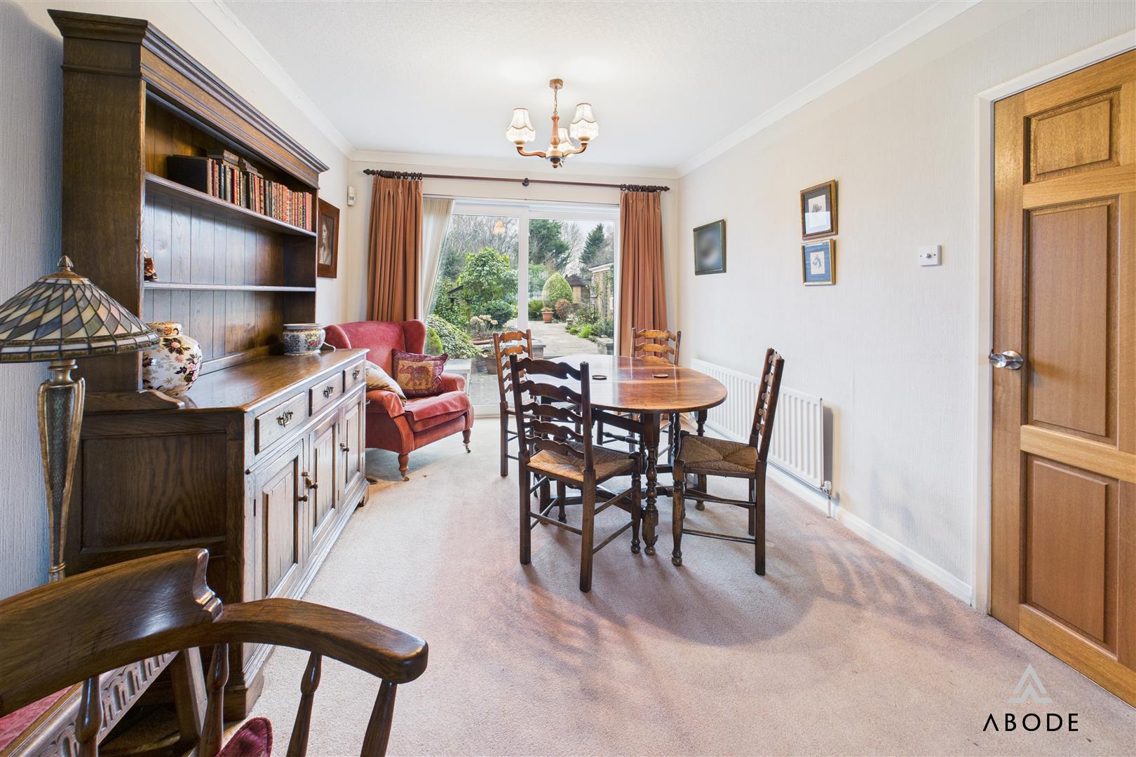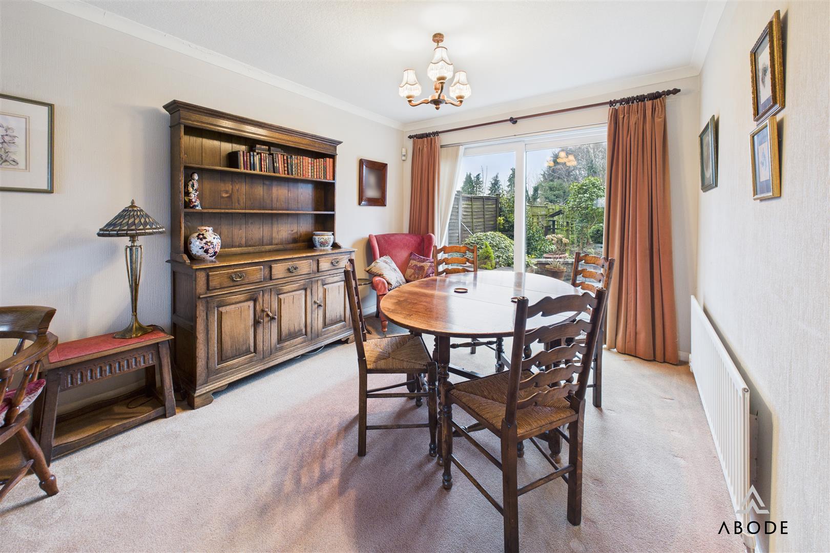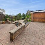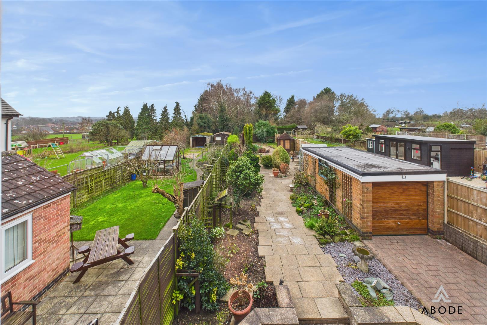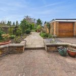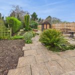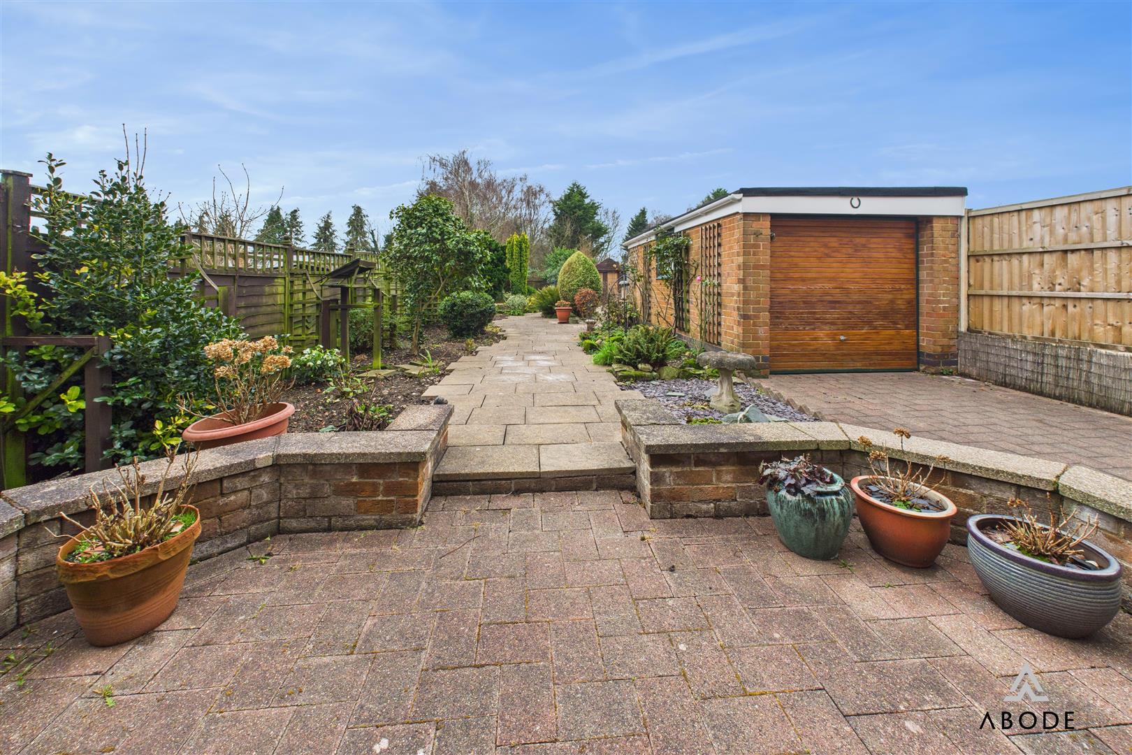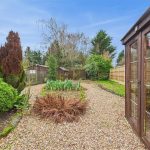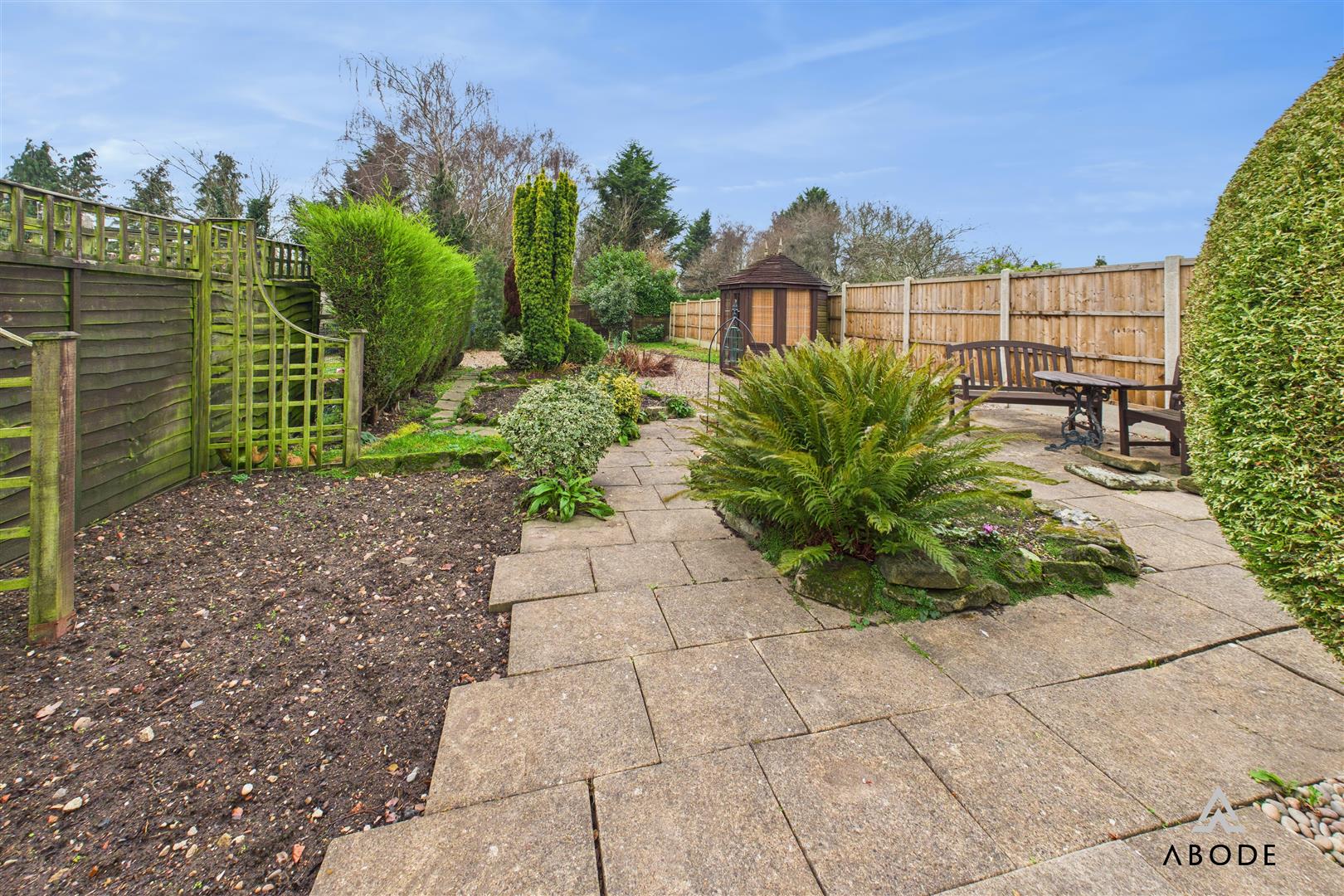 Front lawn with shrubs, driveway to the front and gated to the side drive and down to the single garage. Good size rear garden with established plants and shrubs, seating areas, green house and summer house.