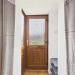 UPVC double glazed window to the side elevation and door leading in from the front, shelving for shoe storage.