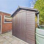 The rear garden is enclosed offering a shaped lawn, paved seating areas, hedge and shrubs, greenhouse and timber summerhouse included in the sale. Mature Woodland area, timber garden shed and water butt. A rear personal door into the single garage.