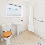 Fully tiled wet room with a shower, low flush wc, wash handbasin, radiator and upvc double glazed window.