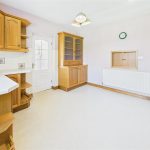 Fitted wall mounted base and drawer unit with work surface and a stainless steel sink and drainer unit. Space for a fridge freezer, plumbing and space for a washing machine, oil fired boiler, radiator, pantry, upvc double glazed window to the side elevation, door to the garden, and a door to the cloakroom.