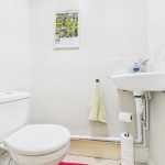 WC and wash hand basin with tiled splash back.