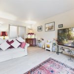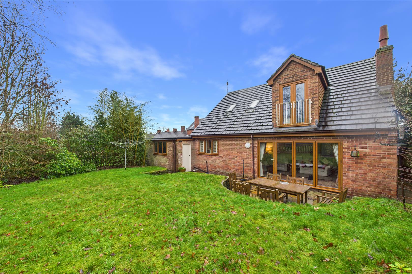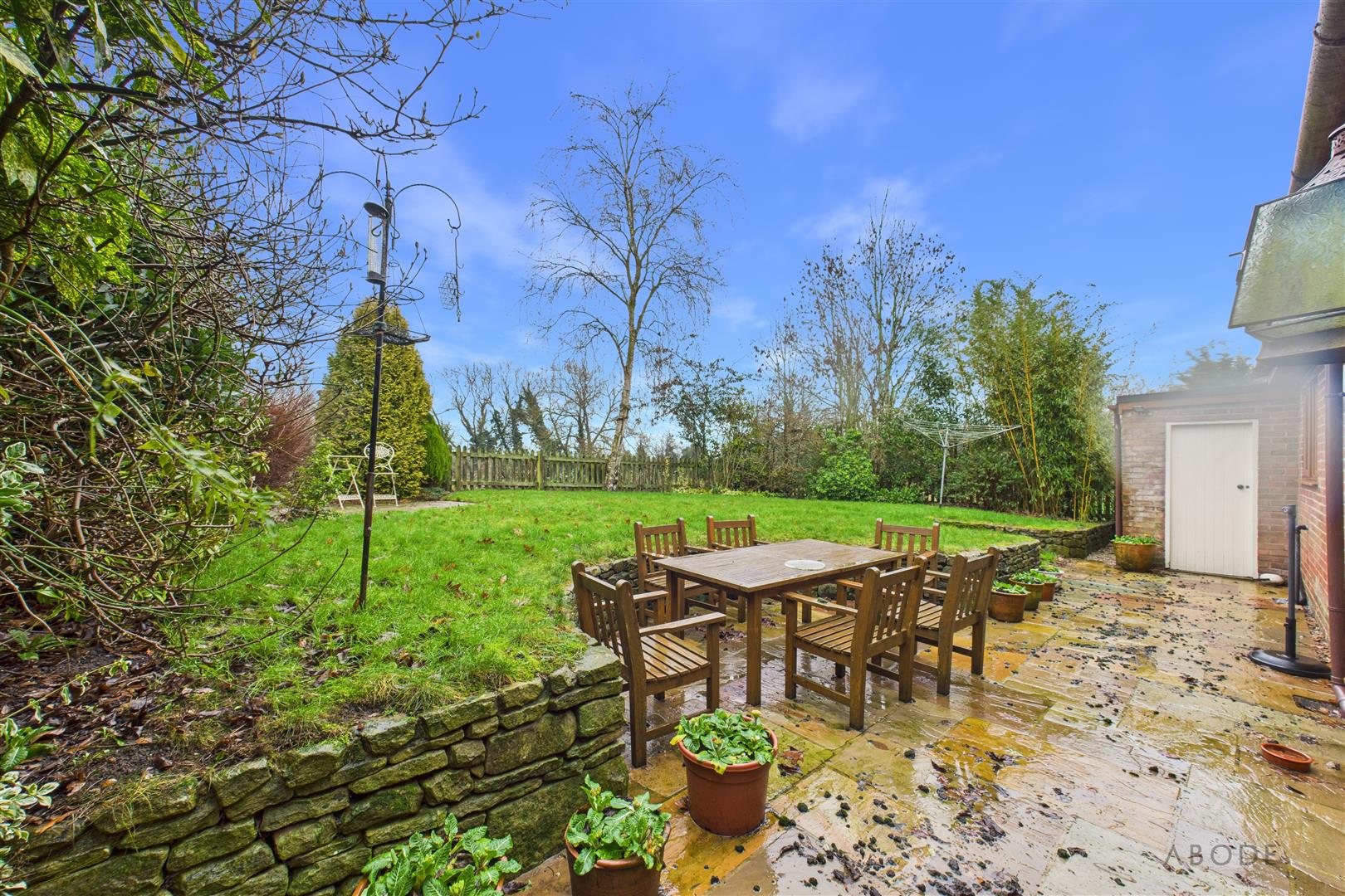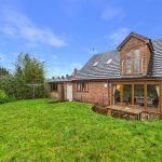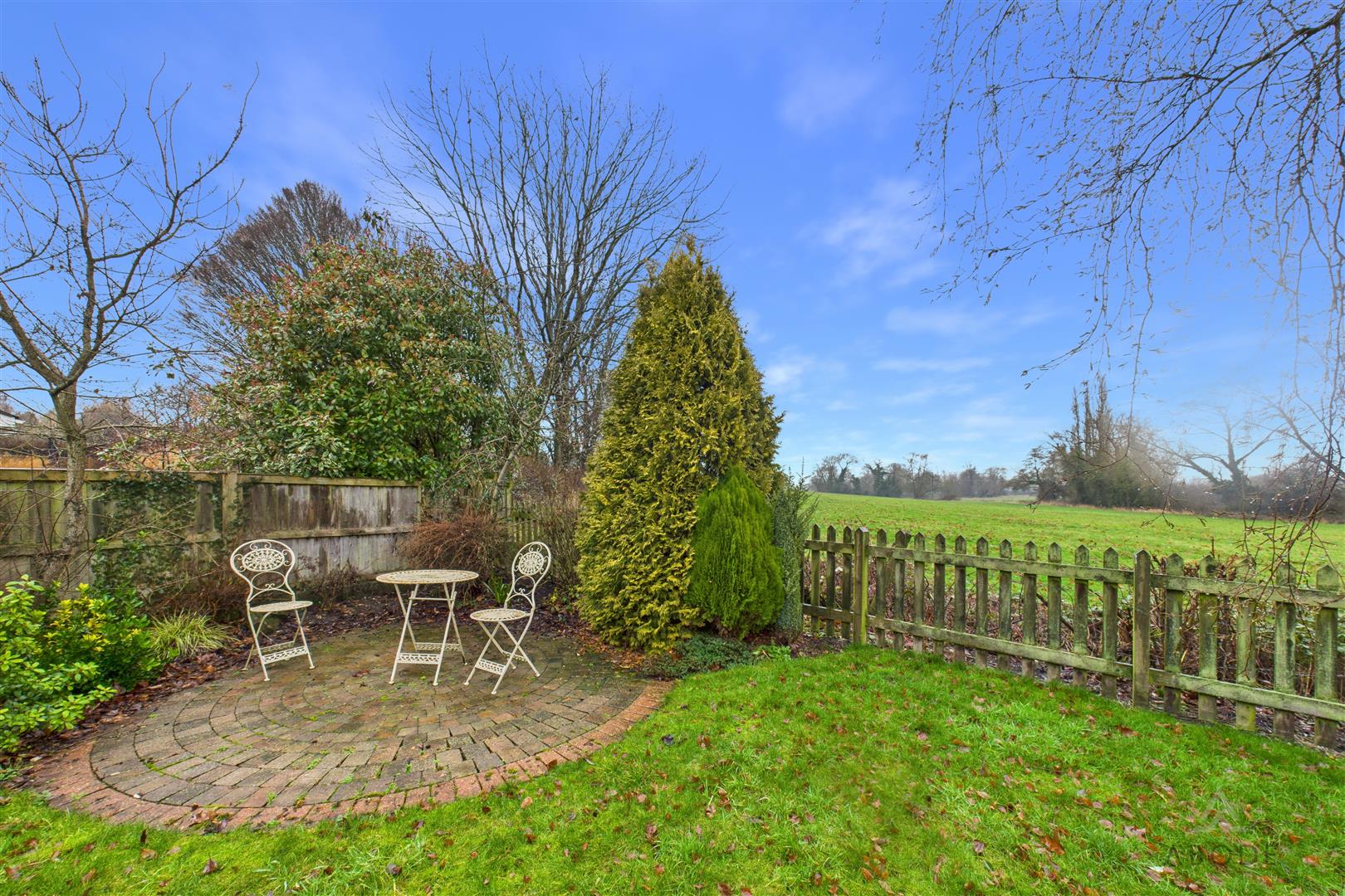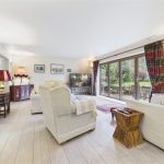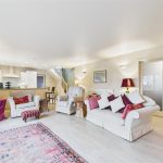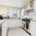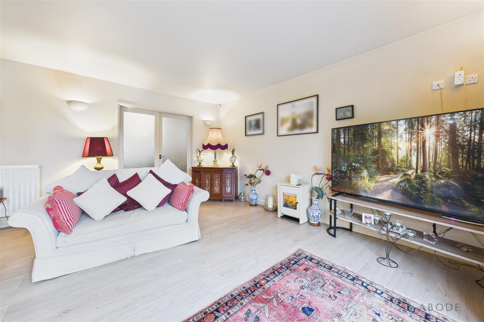 The kitchen area is a masterclass in modern country aesthetics, featuring crisp white shaker-style cabinetry accented by sleek black hardware. Culinary enthusiasts will appreciate the substantial range cooker and generous countertop space, while the integrated wine cooler and breakfast bar add a touch of luxury for social gatherings. A charming window fitted with classic white plantation shutters provides a pleasant outlook over the front of the property. Designed with versatility in mind, the expansive lounge area offers ample proportions for substantial furniture arrangements and flows naturally toward a secondary reception or formal dining room.