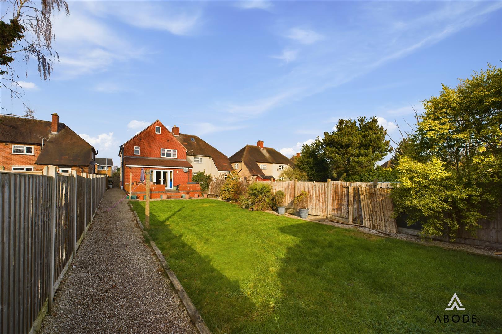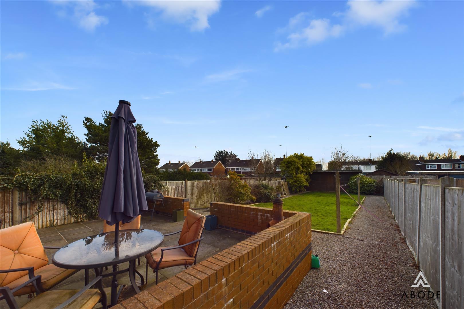 The front elevation of the property boasts a driveway providing ample off-street parking, with convenient side access leading to the rear. To the rear, the property enjoys a generously sized, well-maintained lawned garden, offering plenty of space for outdoor activities. A pathway runs along the side, while a dedicated patio area provides the perfect spot for outdoor seating and alfresco dining. The entire garden is enclosed by a timber fence.