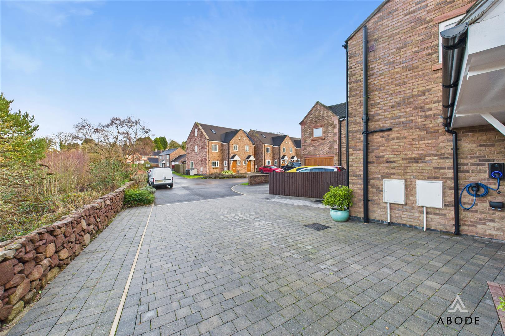 Featuring an up-and-over door to the front elevation, the garage houses the electrical consumer unit and the central heating combination gas boiler, with a composite rear access door for added convenience.