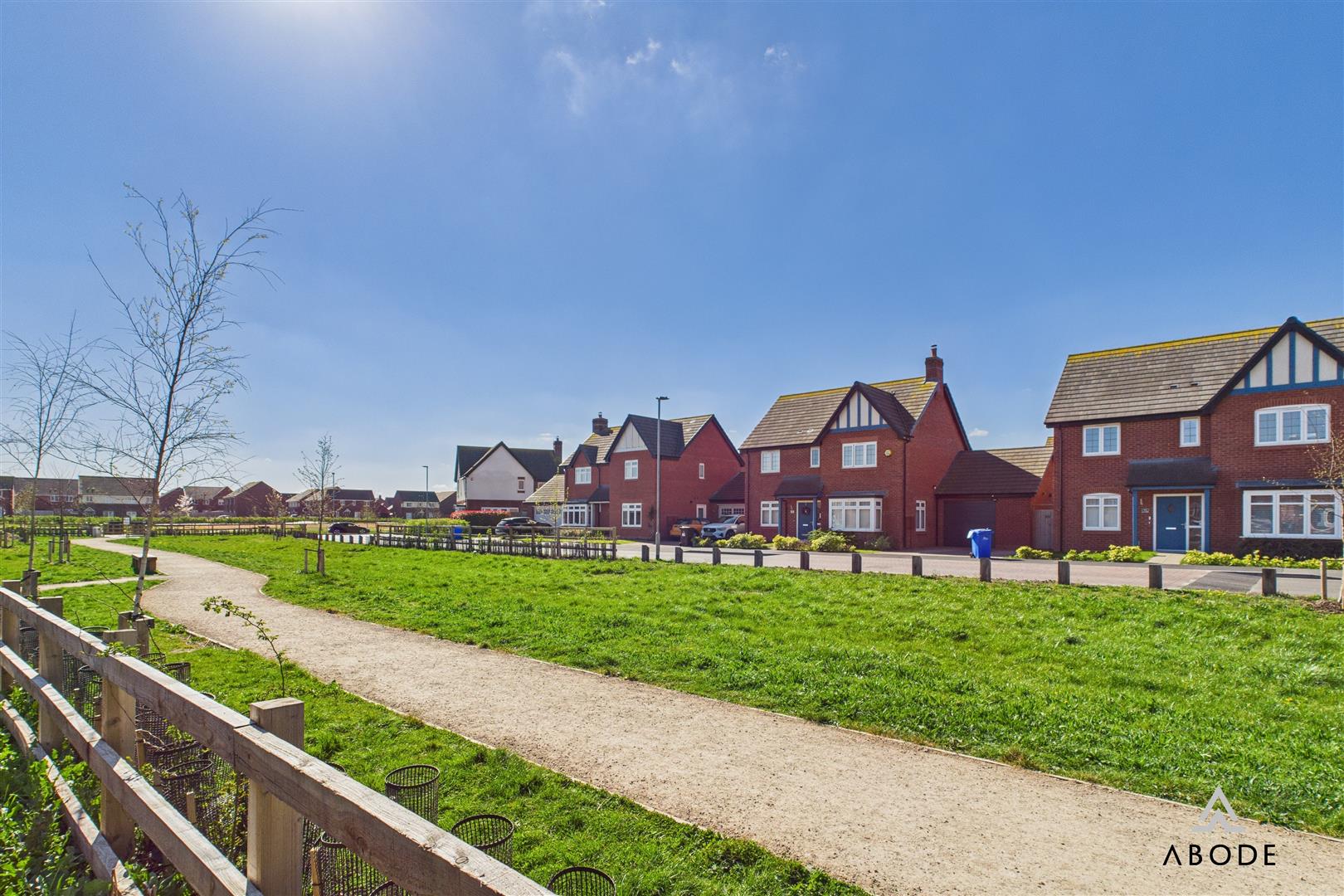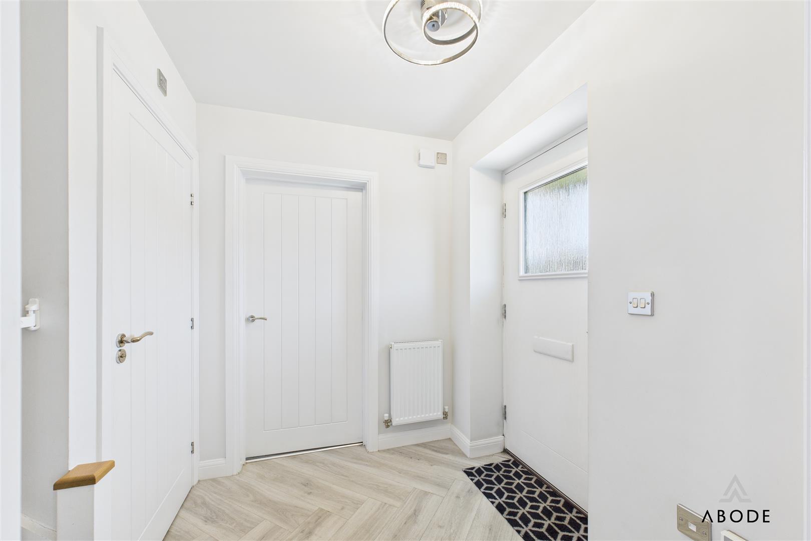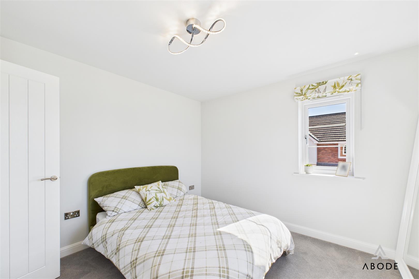 To the first floor, a spacious landing gives access to three bedrooms and the family bathroom. The principal bedroom benefits from fitted mirrored wardrobes and a modern en-suite shower room with tiled walls and a double shower enclosure. The second bedroom is a generous double room with dual aspect windows offering pleasant views over the front, while the third bedroom is currently used as a nursery but would make an ideal child’s room or home office. The family bathroom is fitted with a white three-piece suite, featuring part tiled walls and a window to the rear.