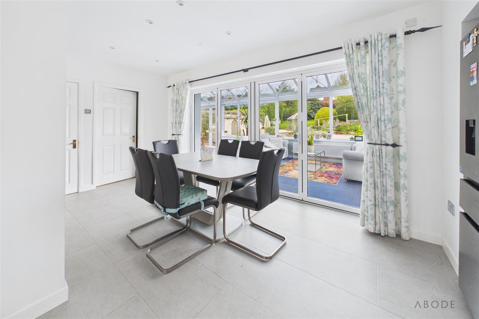 Double glazed bifold doors into the conservatory, storage cupboard, radiator and open through the the kitchen.