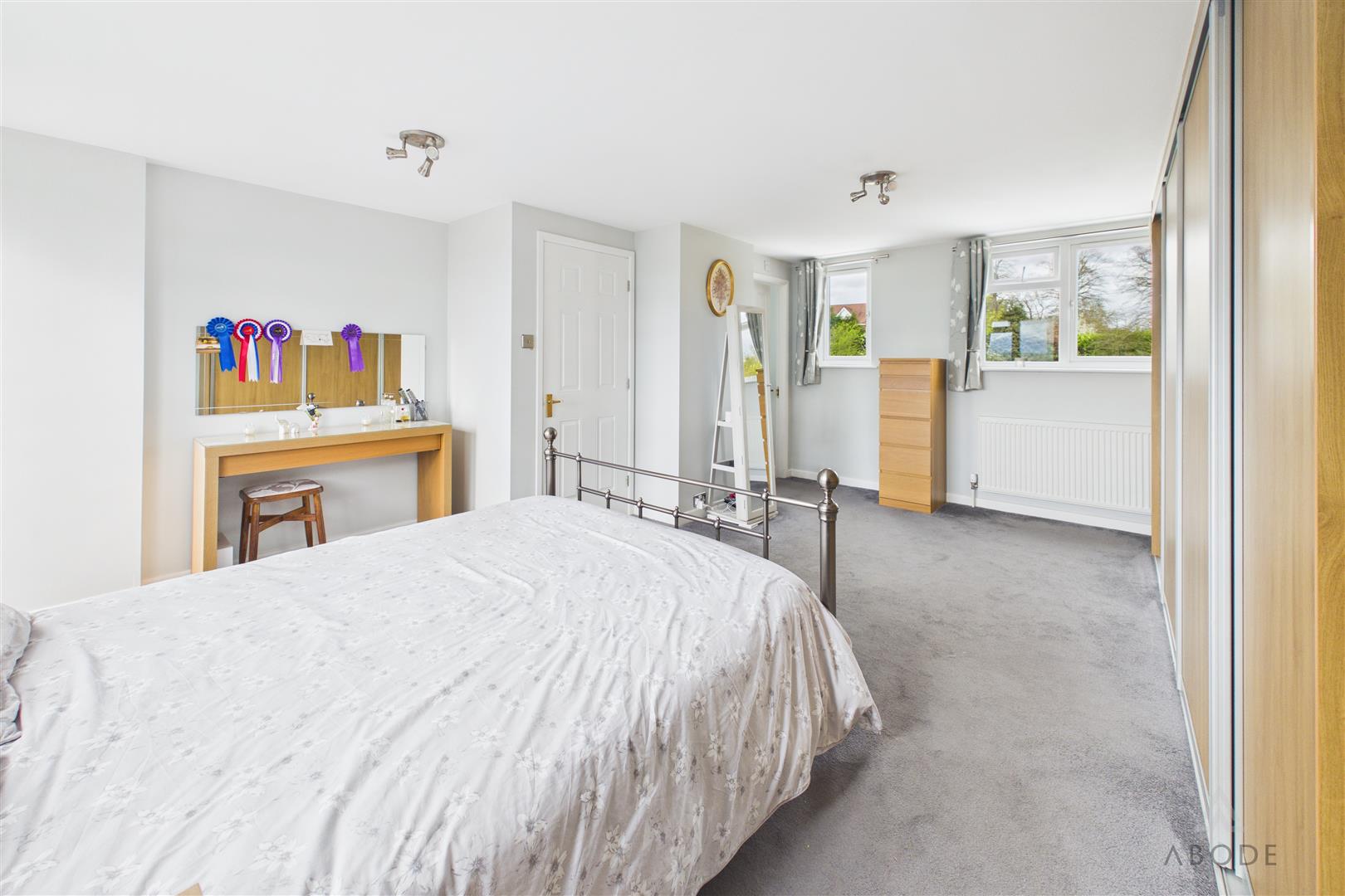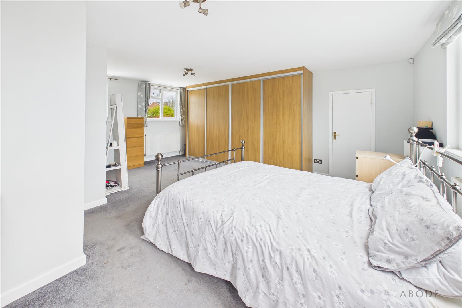 Wardrobes, two upvc double glazed windows and a door onto the flat roof (previous balcony area), radiator.
