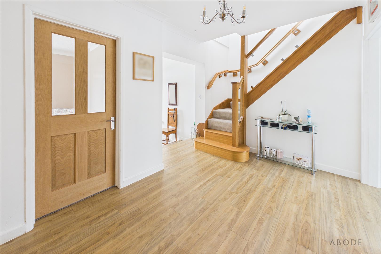 Entrance door into the hall with radiators, wood effect flooring and a stunning stair case to the first floor.