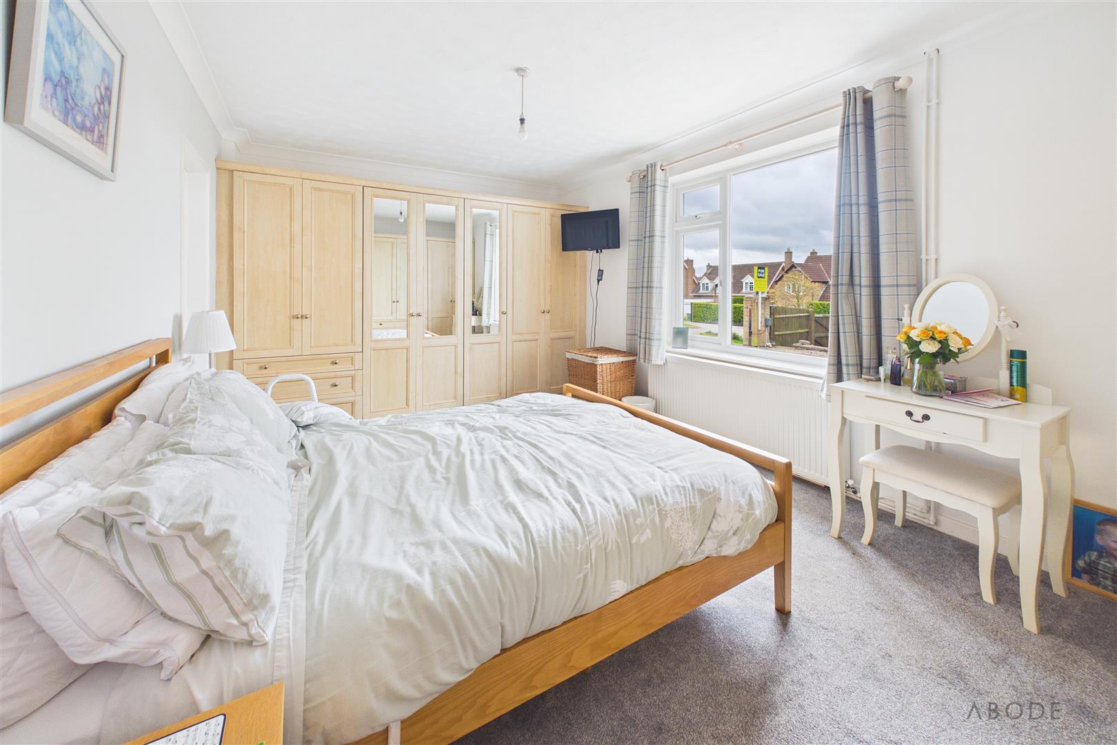 Upvc double glazed window, fitted wardrobes, cupboards and drawers, radiator.