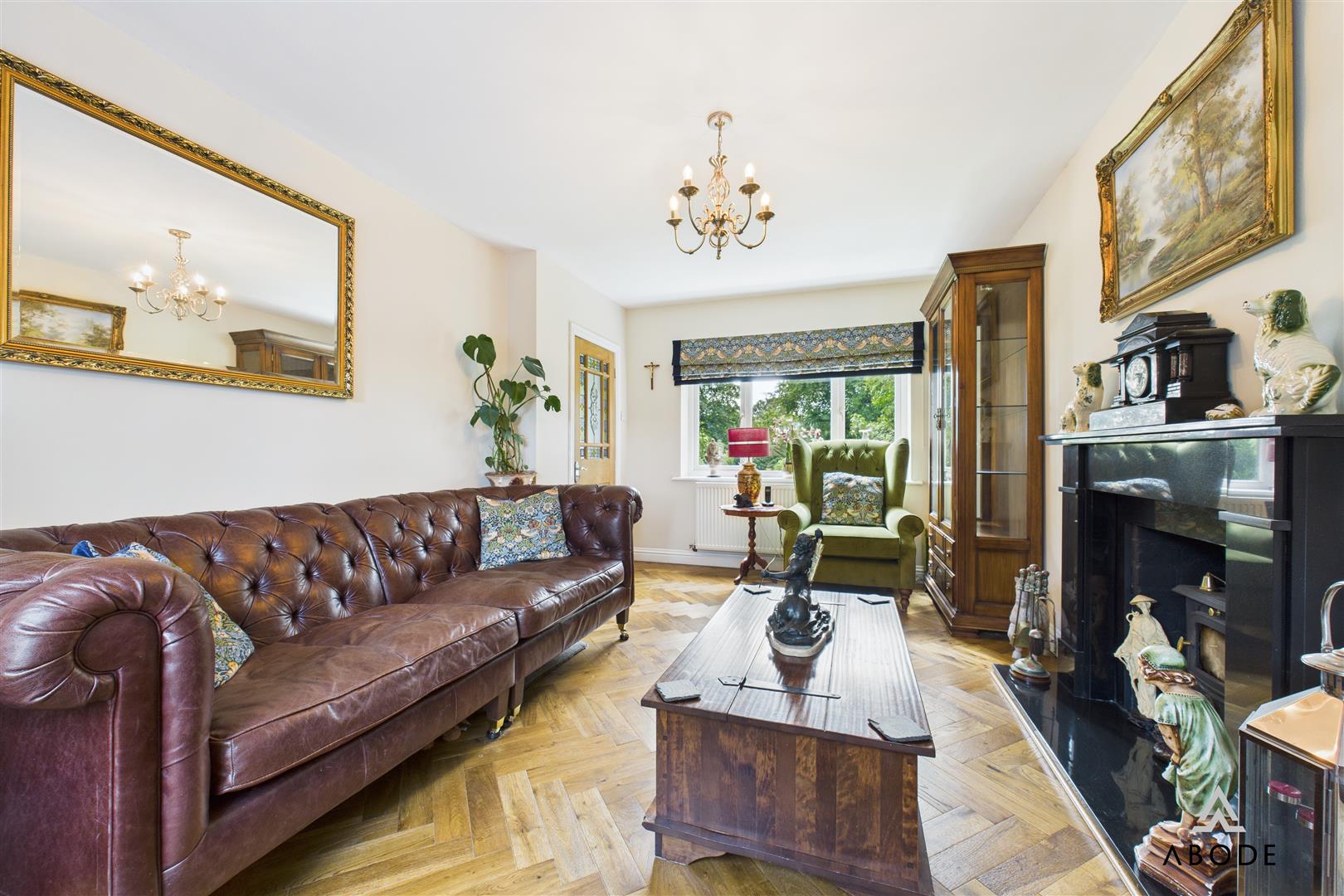 A beautifully proportioned reception room enjoying dual-aspect views to the front and rear via two uPVC double-glazed windows. The herringbone oak flooring adds warmth and character, while the focal point is a cast iron log-burning fireplace set within a granite composite Adam-style surround. The room also features a TV aerial point and two central heating radiators.