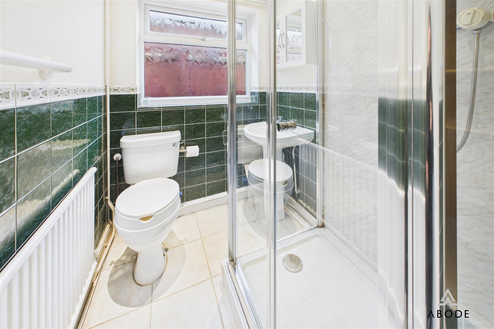 Enclosed shower, low flush wc, Wash hand basin, radiator and a UPVC double glazed window.
