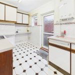 Fitted wall mounted base and drawer units with work surfaces and a sink and drainer unit. Fitted electric oven with gas hob, plumbing and space for a washing machine and further appliance spaces. Radiator 3 UPVC double glazed windows and a door to the side.