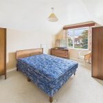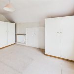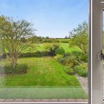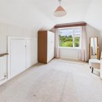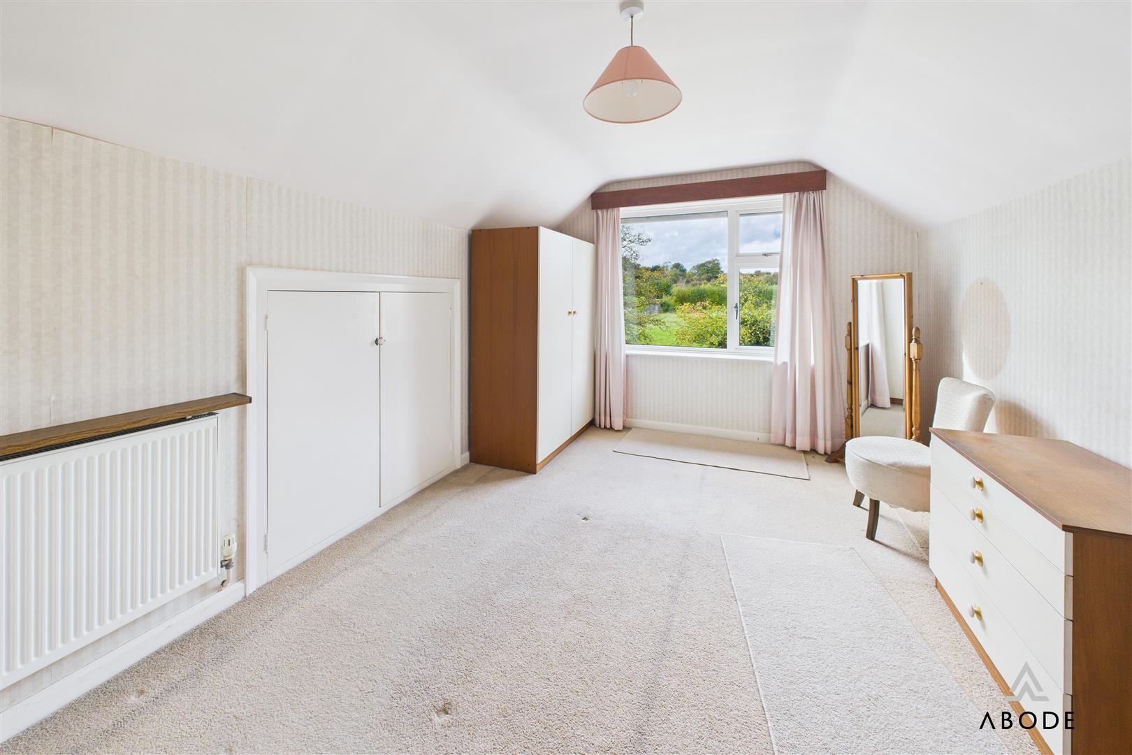 Upvc double glazed window with stunning views over the garden and fields, radiator and eaves storage cupboard.