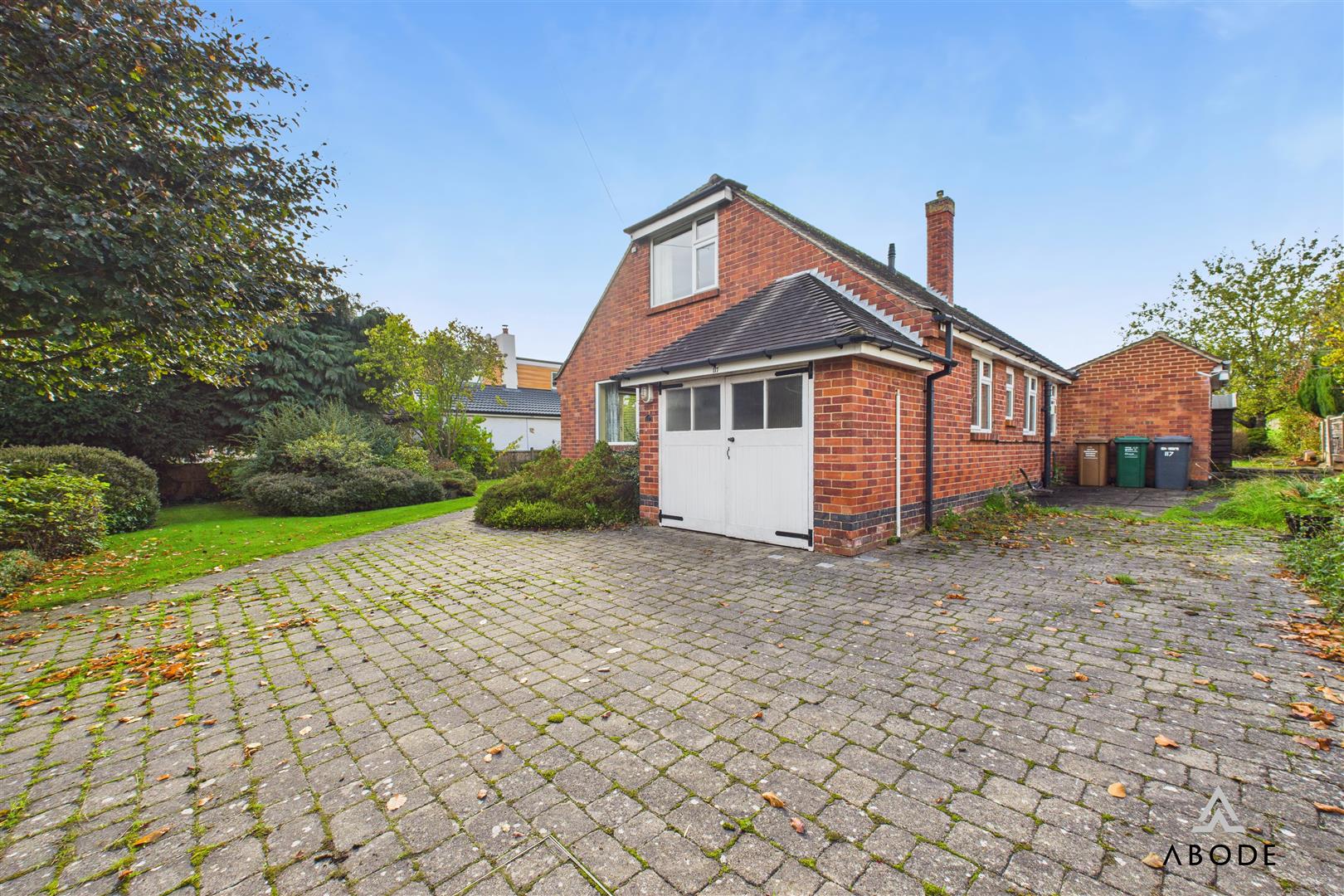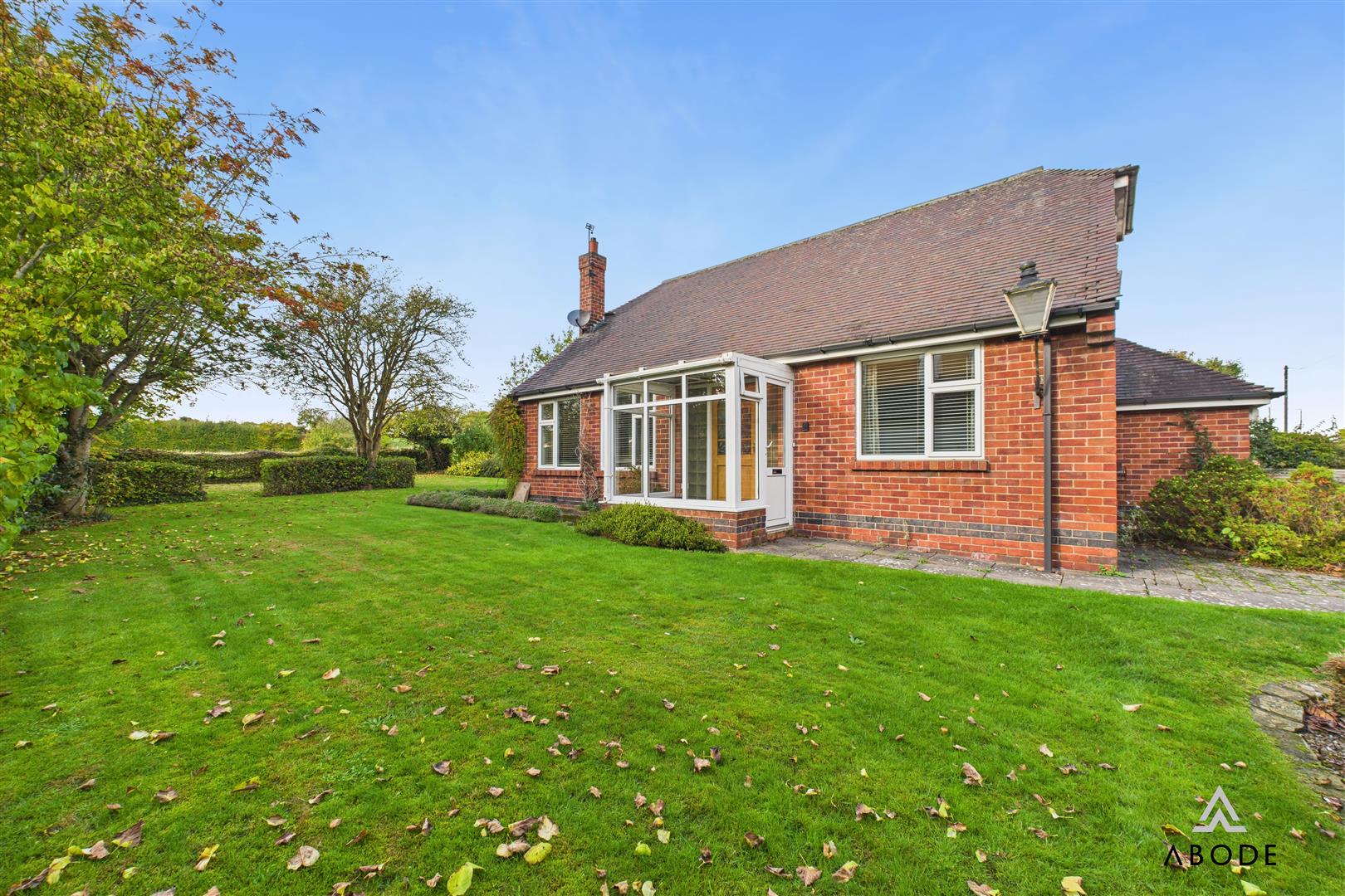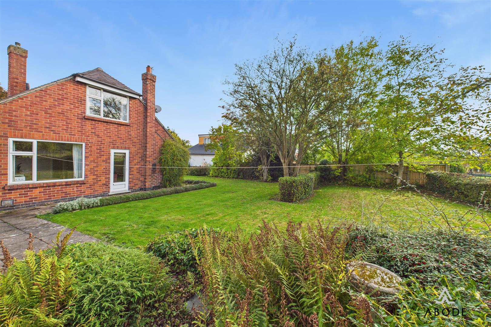 Extensive plot offering a block paved drive and turning, single garage, extensive lawns with mature shrubs and trees and a further paddock included in the sale.