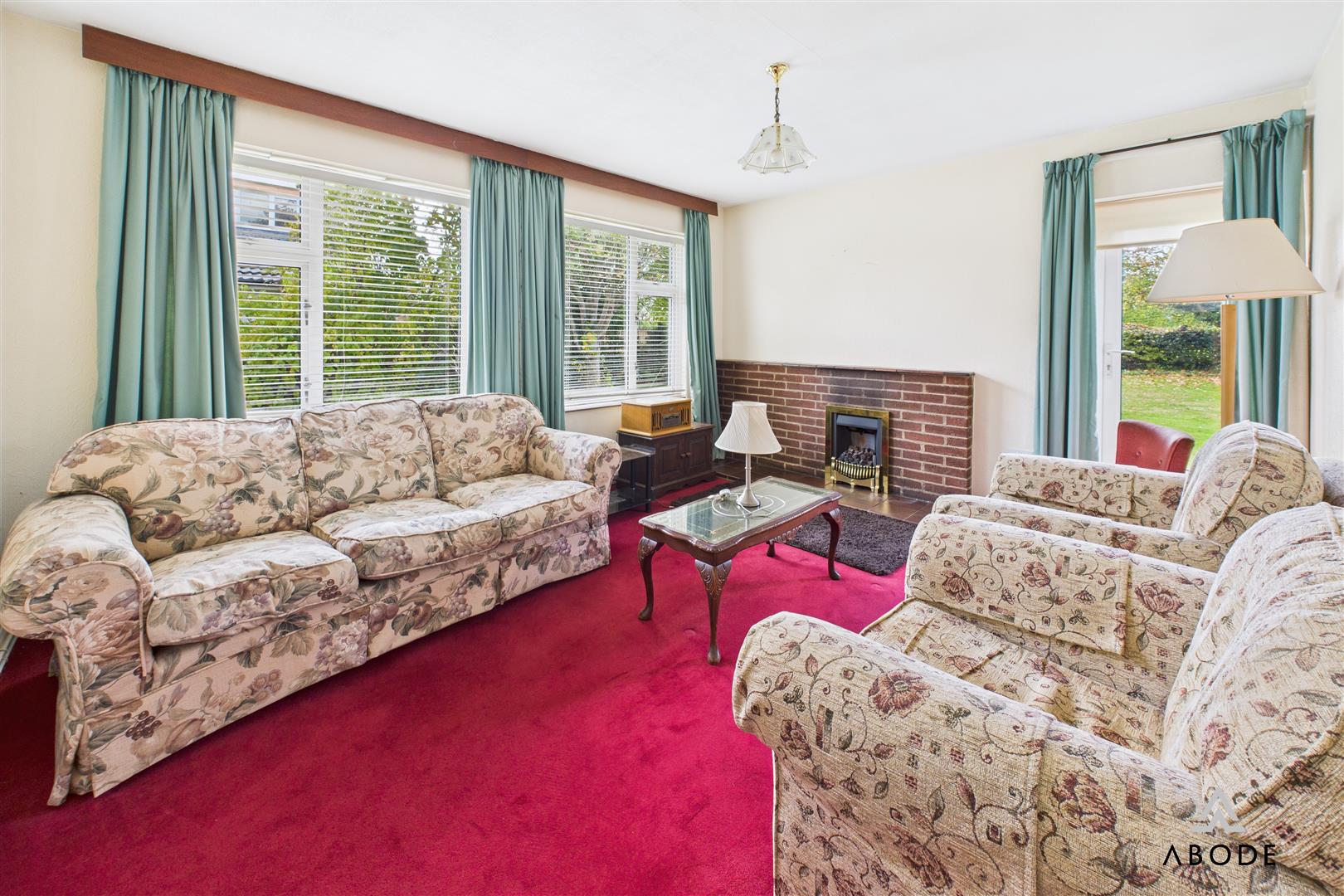 Living flame coal, effect gas fire with brick surround, upvc double glazed windows and a door onto the garden, radiator.