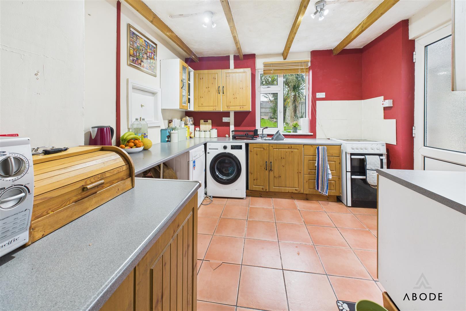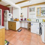 Fitted wall mounted base and drawer units with work surfaces and a sink and drainer unit. Appliance spaces, UPVC double glazed window to the rear, radiator and a door to the garden.