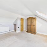 A charming top-floor bedroom offering velux window to the front elevation and a central heating radiator.