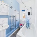 This stylish bathroom benefits from a UPVC double-glazed frosted window to the rear and a three-piece suite consisting of a low-level WC with continental flush, bath with electric shower over and a wash hand basin with tiled splashback. Complimentary wall tiling and a chrome heated towel radiator complete the room.