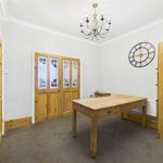 A warm and inviting space featuring a UPVC double-glazed window to the front elevation. The focal point log-burning fireplace adds charm (currently not flue connected). Additional features include a meter cupboard housing the electric meter and consumer unit, telephone point, thermostat, dimmer switch lighting and internal double timber doors opening into the dining room.