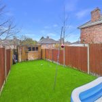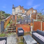To the rear, the property enjoys a tiered garden that offers a choice of seating and entertaining areas. There is an initial patio terrace, steps leading up to further sections, and a lawn area (laid with artificial grass), all enclosed by a combination of fencing and brick walling. A timber shed provides useful external storage.