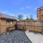 To the side of the property, next to the dining kitchen, is a well-presented, low-maintenance landscaped garden featuring a paved patio area ideal for seating and entertaining, with block-paved edging and a gravelled bed. There are raised borders with a variety of shrubs and plants, along with space for a shed (available by separate negotiation) on a concrete base, and gated access to the front of the property. A driveway to the side of the garden provides off-road parking for two vehicles. To the front, there is a lawned garden that wraps around to the opposite side of the house, bordered by established hedging.