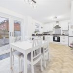 Undoubtedly the heart of the home, this impressive open-plan kitchen, dining and living space enjoys dual-aspect views to the front and side. Two UPVC double-glazed windows with built-in shutter blinds and roller blinds provide ample light, while UPVC double-glazed French doors with integrated blinds open onto the rear patio. The kitchen is fitted with a range of matching base and eye-level units with roll-top work surfaces, integrated stainless steel gas hob with extractor hood, oven and grill, and a stainless steel sink with mixer tap. There is plumbing and space for freestanding under-counter appliances, a central heating combination boiler, extractor fan and two central heating radiators. An internal door leads to the utility room.