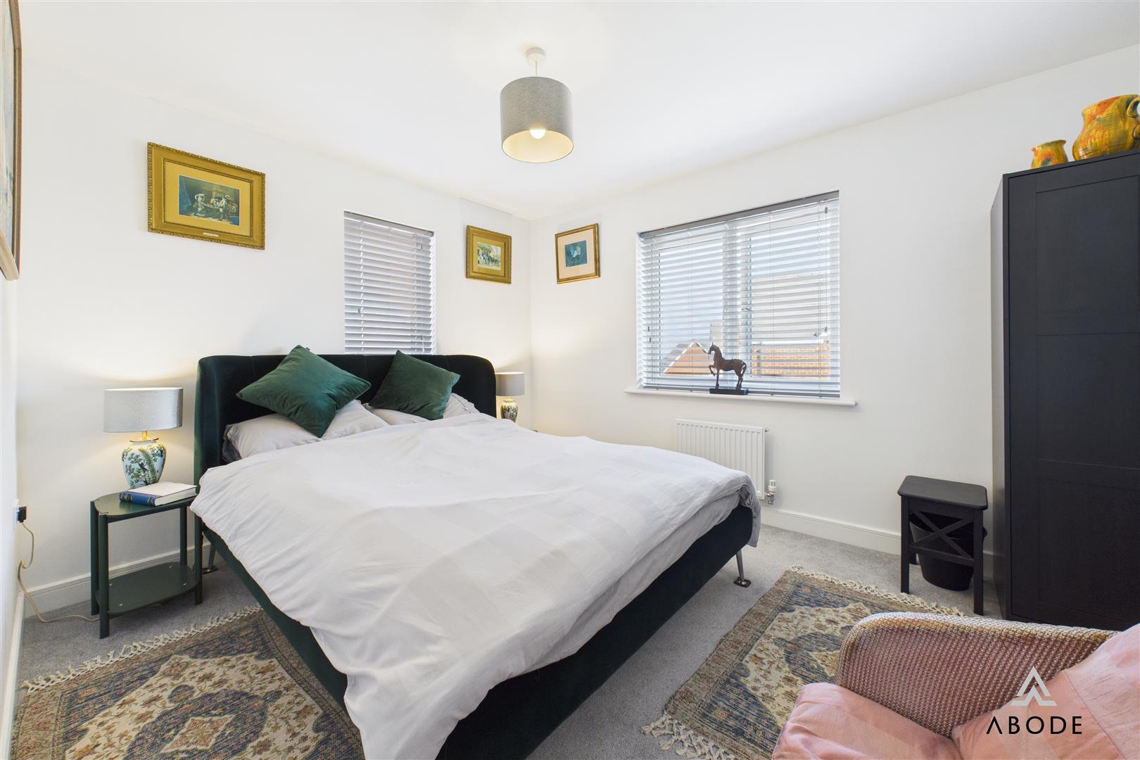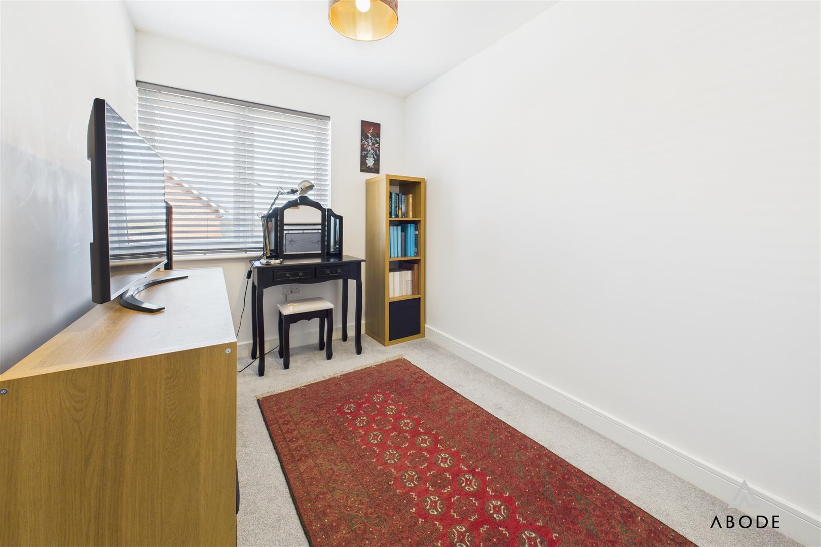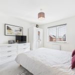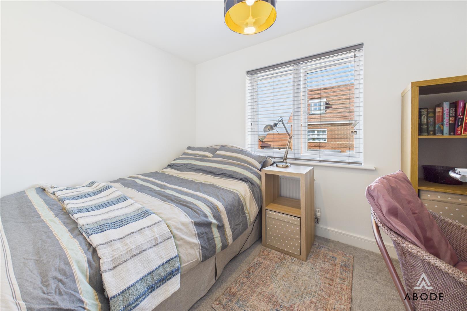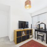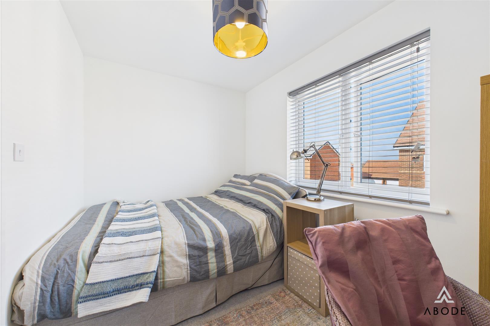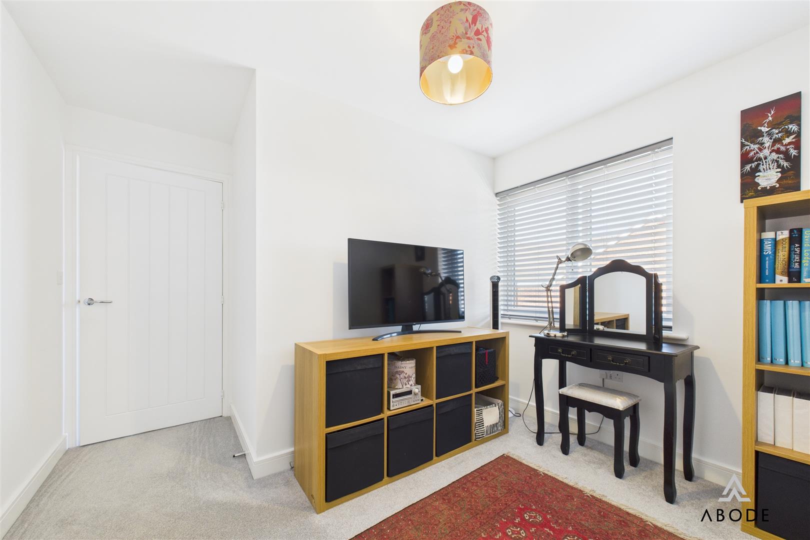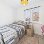 With dual aspect views to both front and side elevations with 2x UPVC double-glazed units, central heating radiator, telephone point, and a useful over-stairs built-in storage cupboard with hanging rail and base shelving.