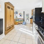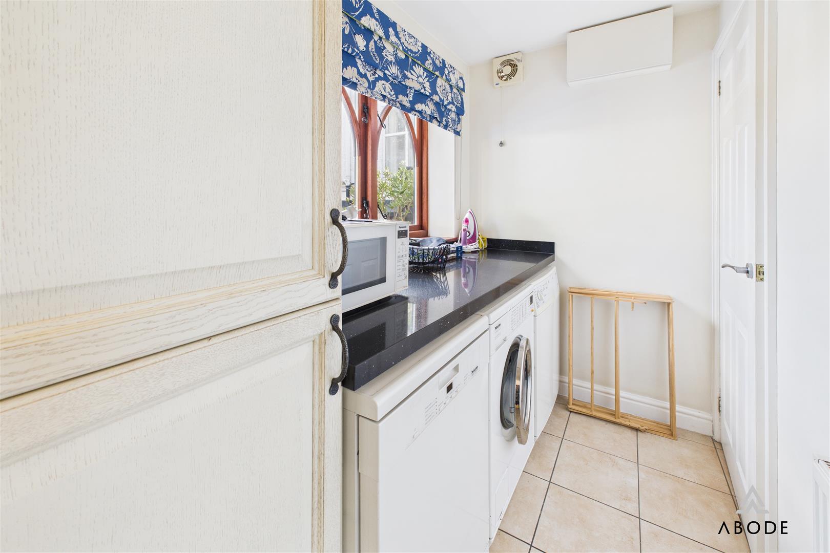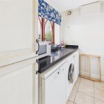 Work surface, plumbing and space for a washing machine and a dishwasher, space for a tumble dryer, fitted cupboards, storage cupboard and a radiator, double glazed window.