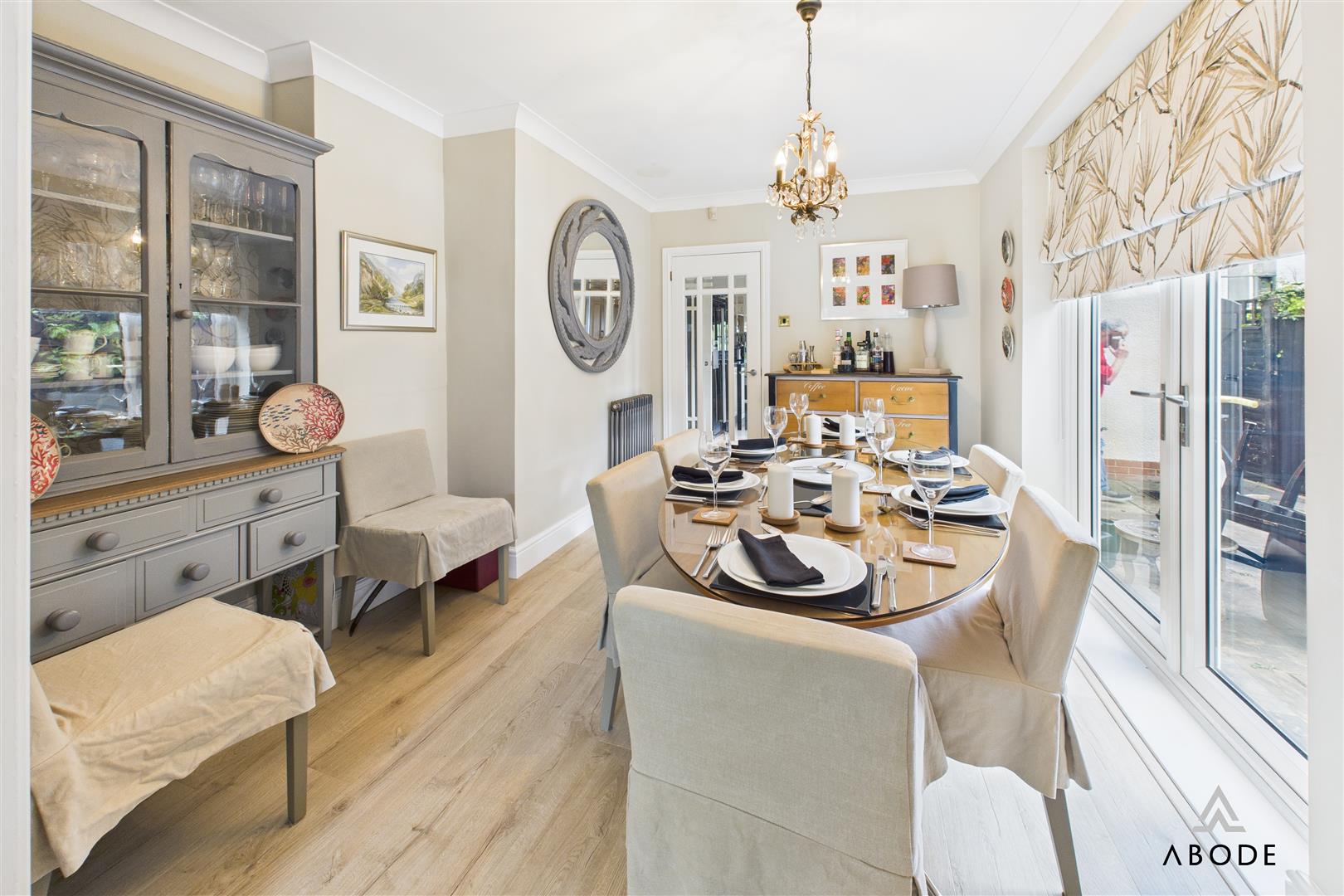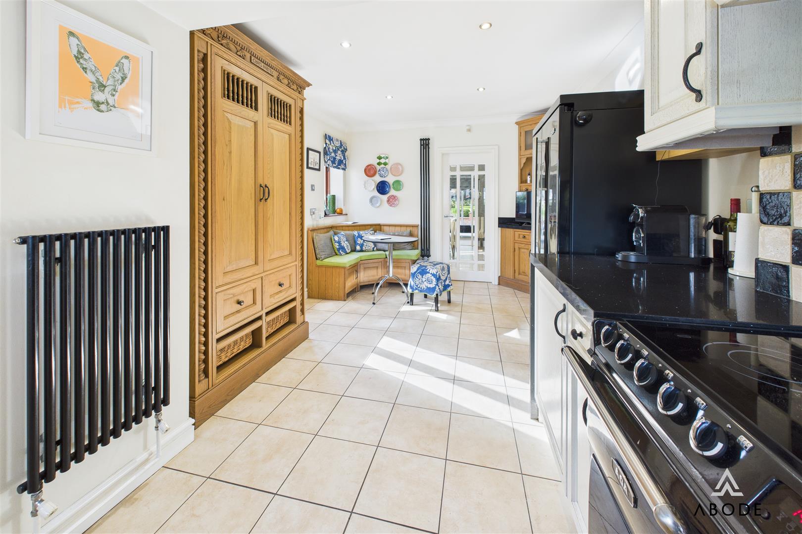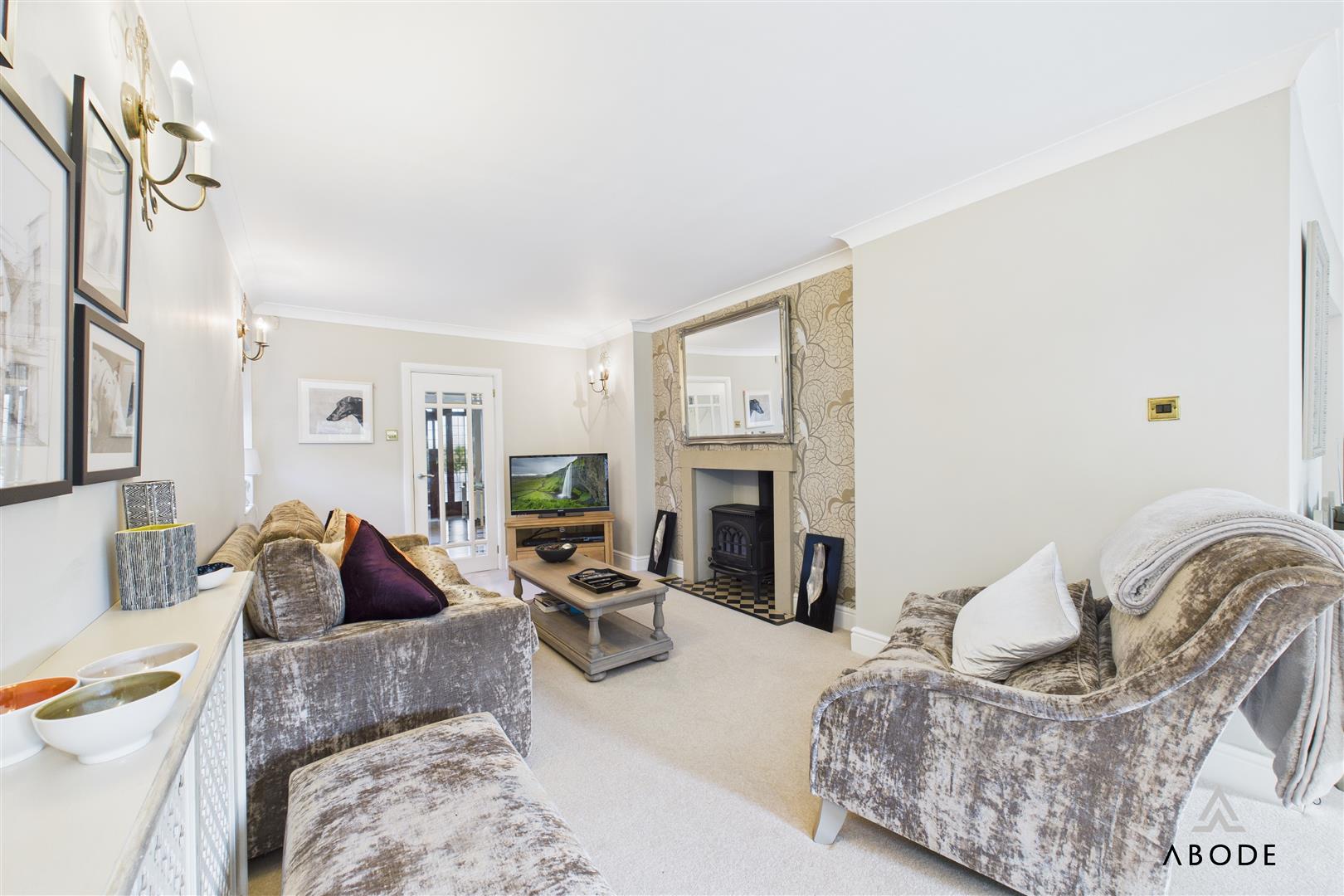 UPVC double glazed double doors to the side, cast-iron style radiator and a door to the kitchen.