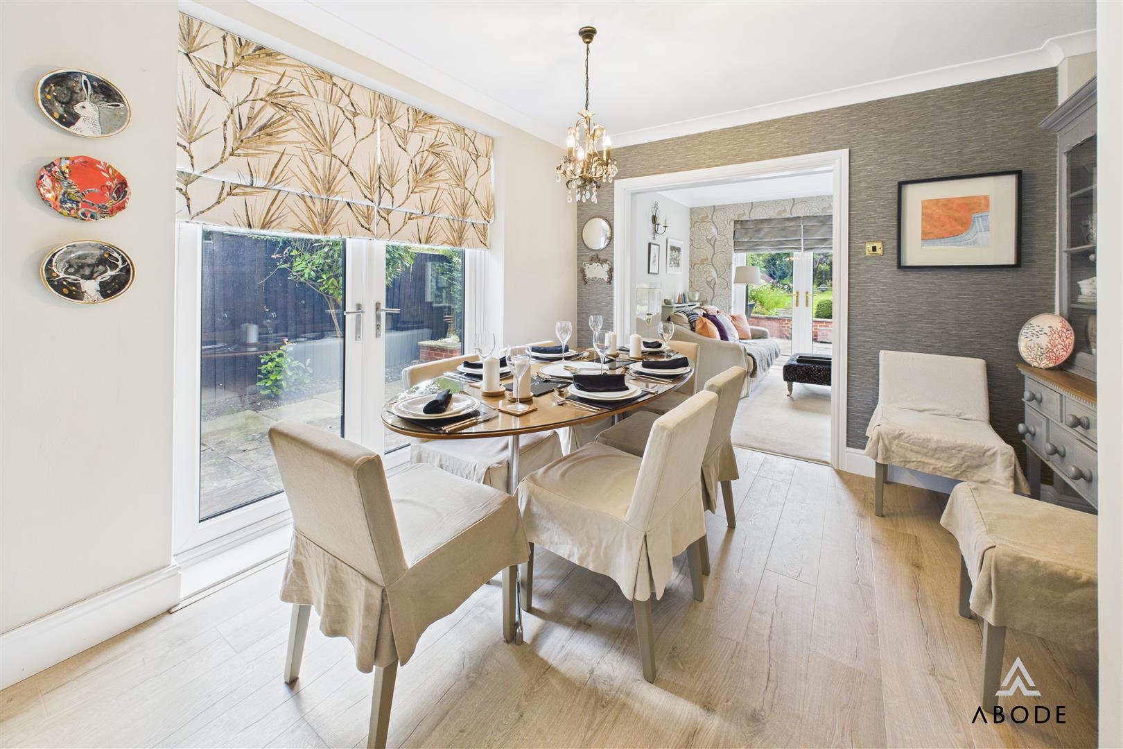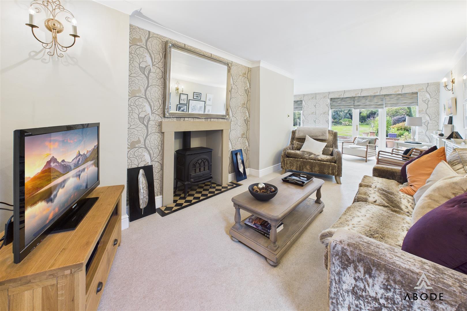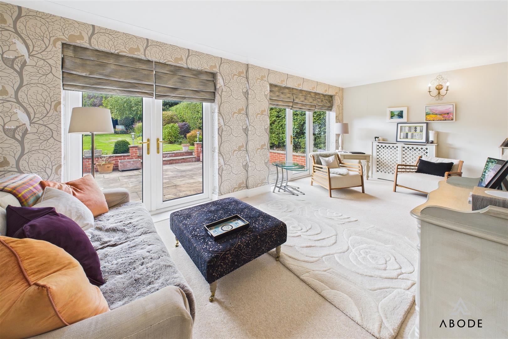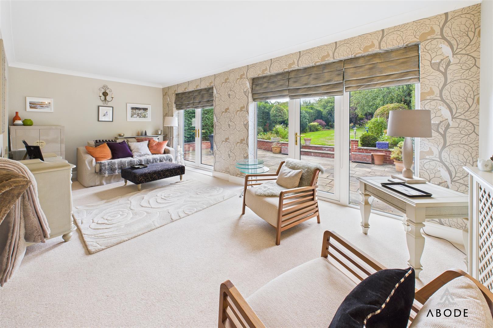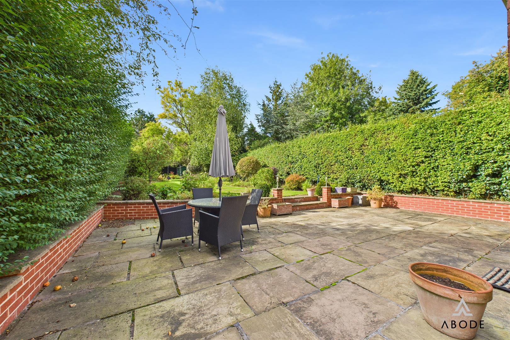 Long driveway offering ample parking and space for a motorhome or caravan, detached double garage with two up and over doors. Side gated access to the enclosed rear garden offering a good size lawn well established borders, shrubs and trees. Seating areas and a garden shed.