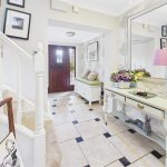 Loft access with pull down ladder, upvc double glazed stain glass window to the side elevation and doors to -