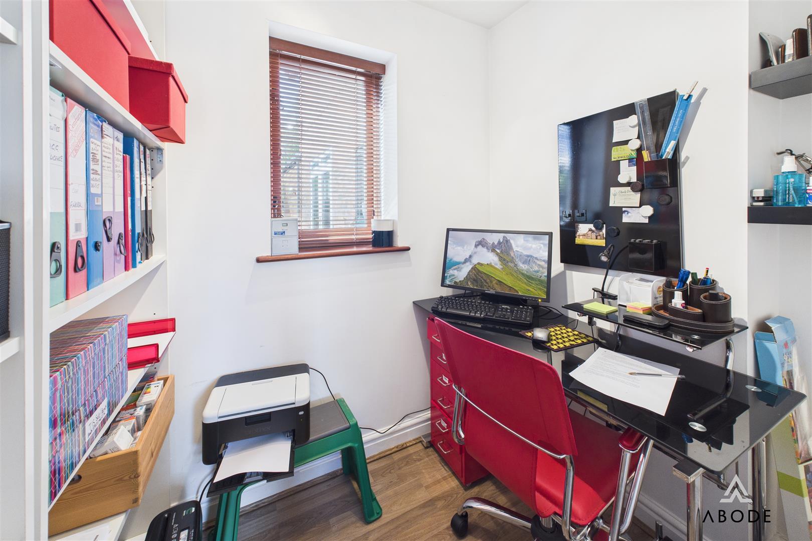 Fitted wardrobes, cast-iron style radiator and a upvc double glazed window overlooking the garden.