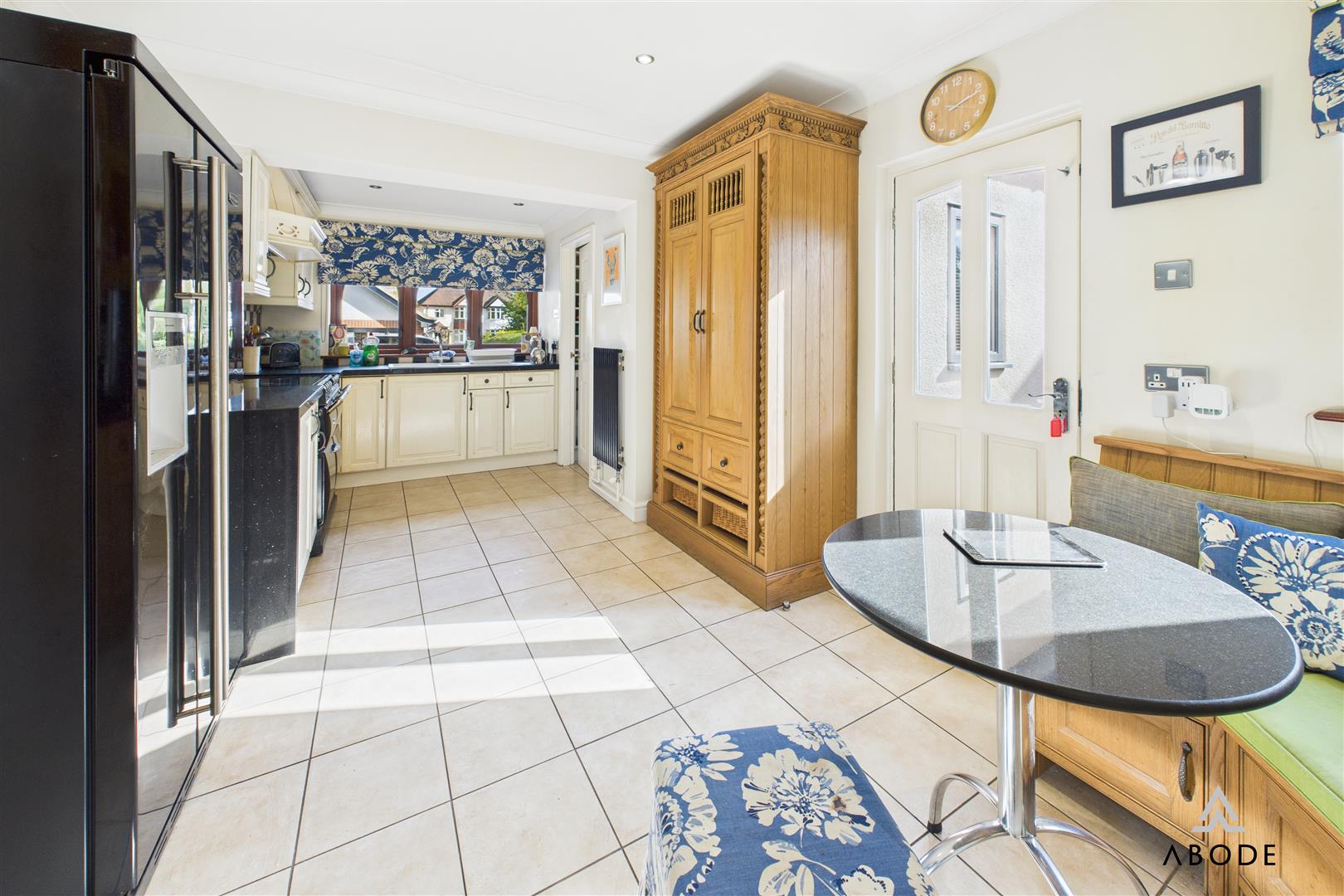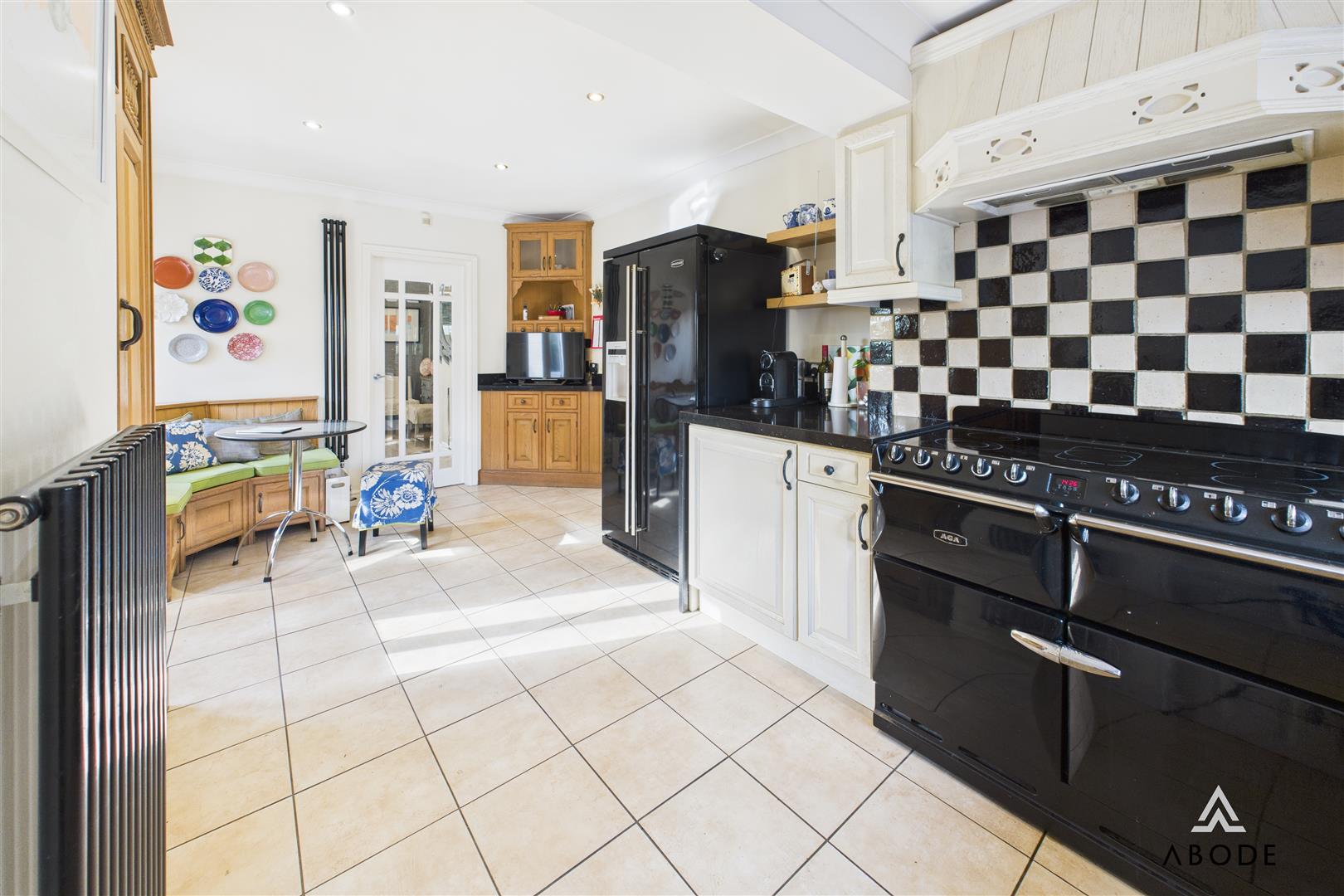 Fitted wall mounted, base and drawer unit with work surfaces and a sink and drainer unit. Space for range style cooker with fitted extractor fan space for a fridge freezer, radiator, double glazed window to the front and side elevations and a door to the garden.