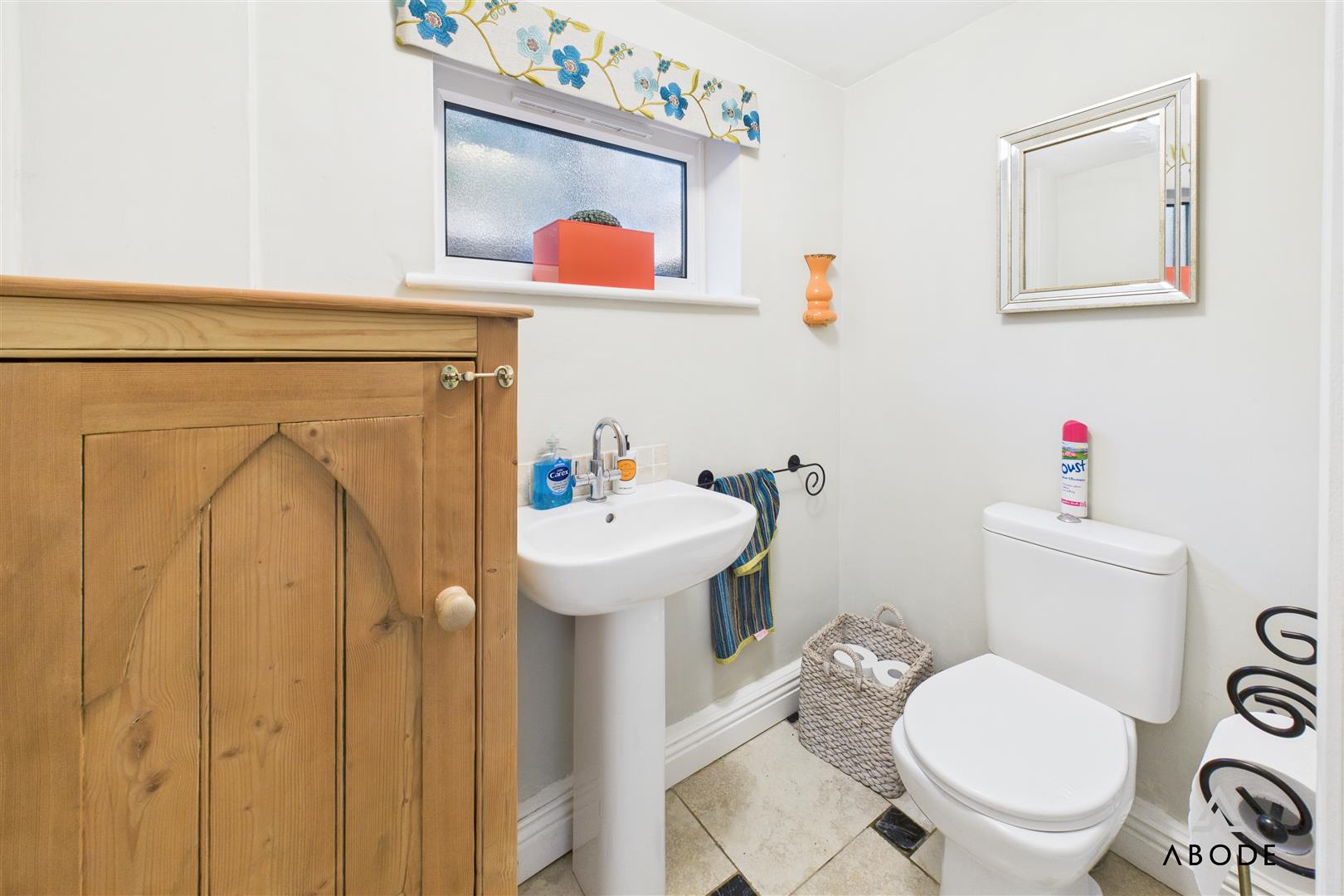 Low flush wc, wash hand basin, radaitor and upvc double glazed window.
