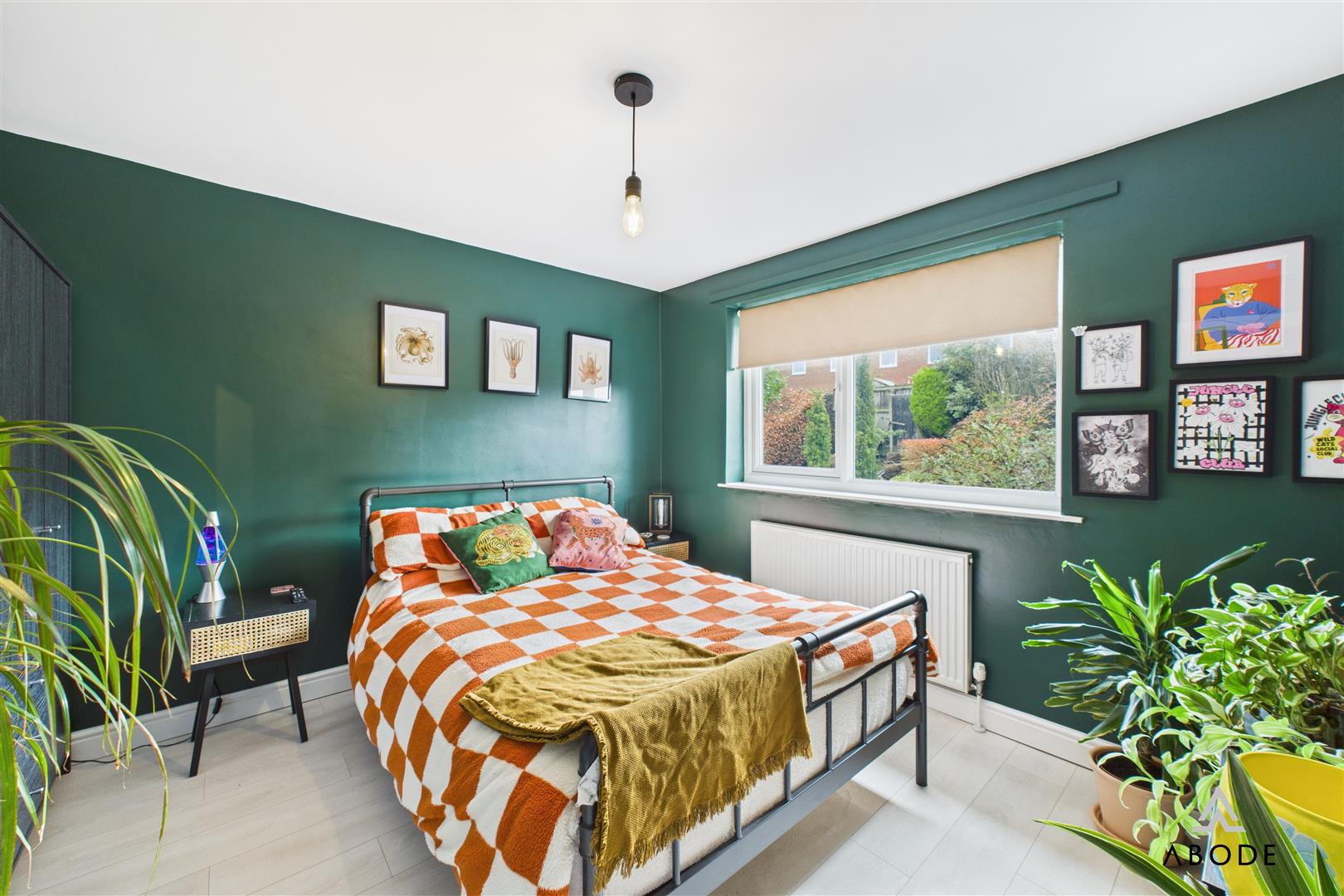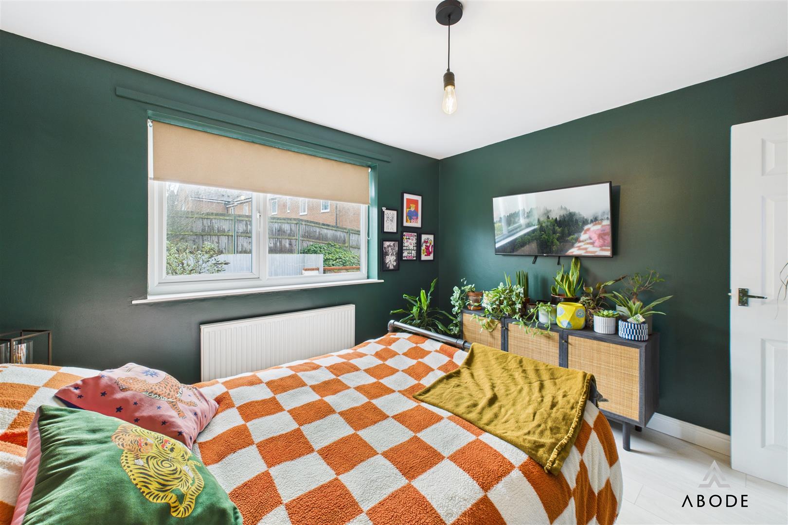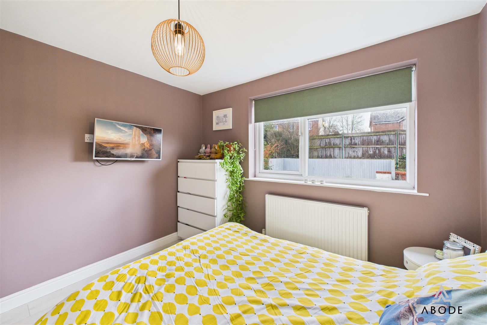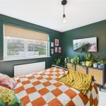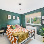 The master bedroom overlooks the rear garden and is beautifully finished in a warm, contemporary palette, offering space for wardrobes and bedroom furniture.