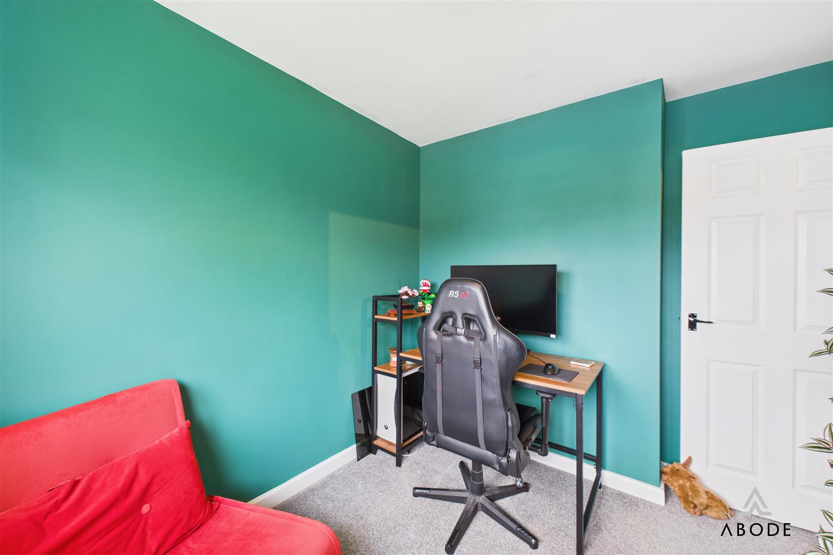 Bedroom two is a generous double positioned to the front, enjoying far-reaching views over the surrounding area and currently used as a multi-functional space with room for both leisure and working-from-home setups.