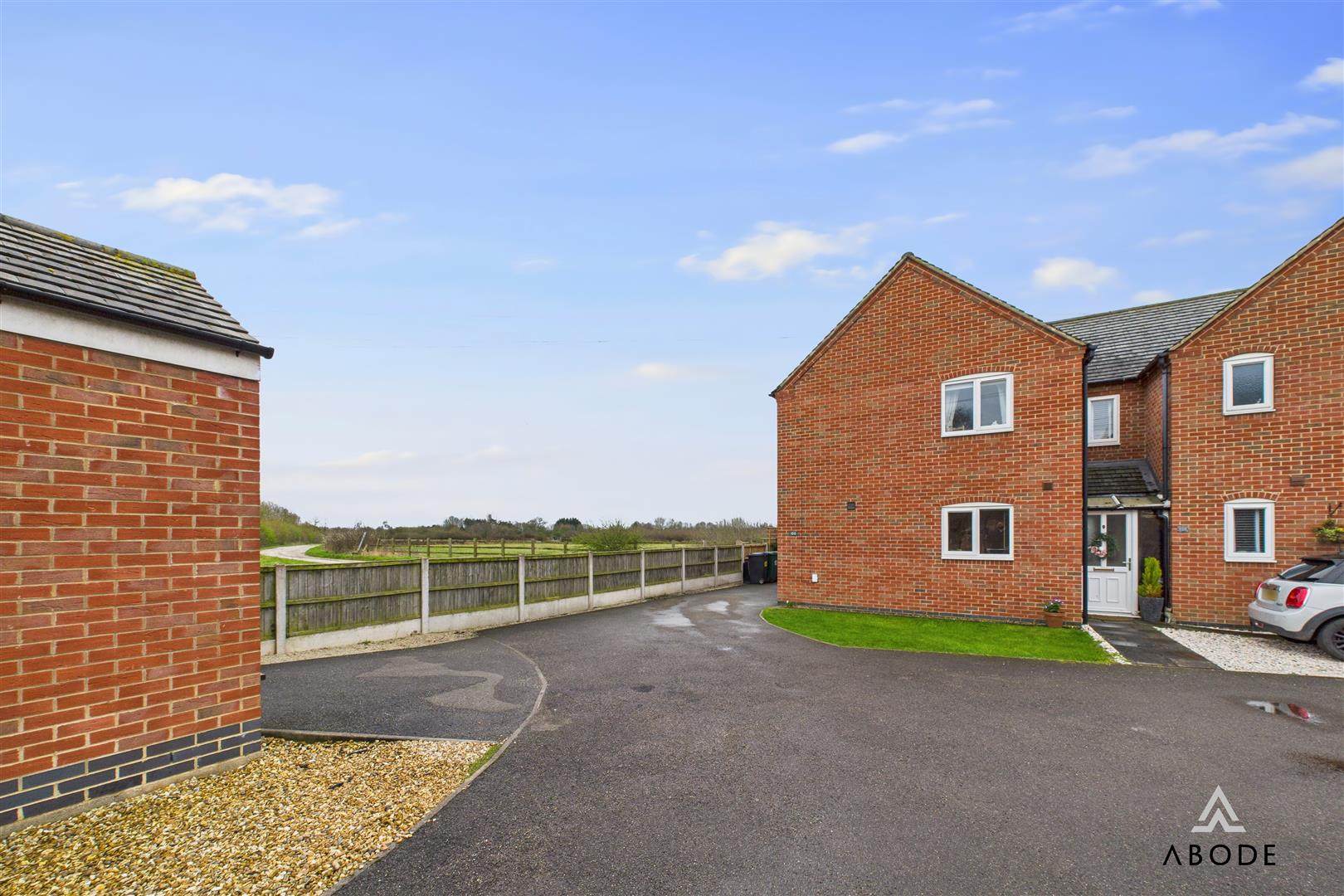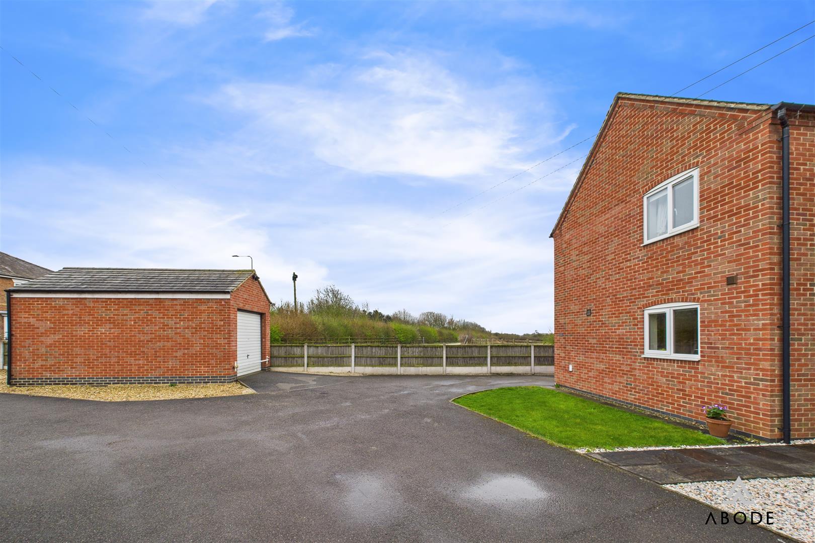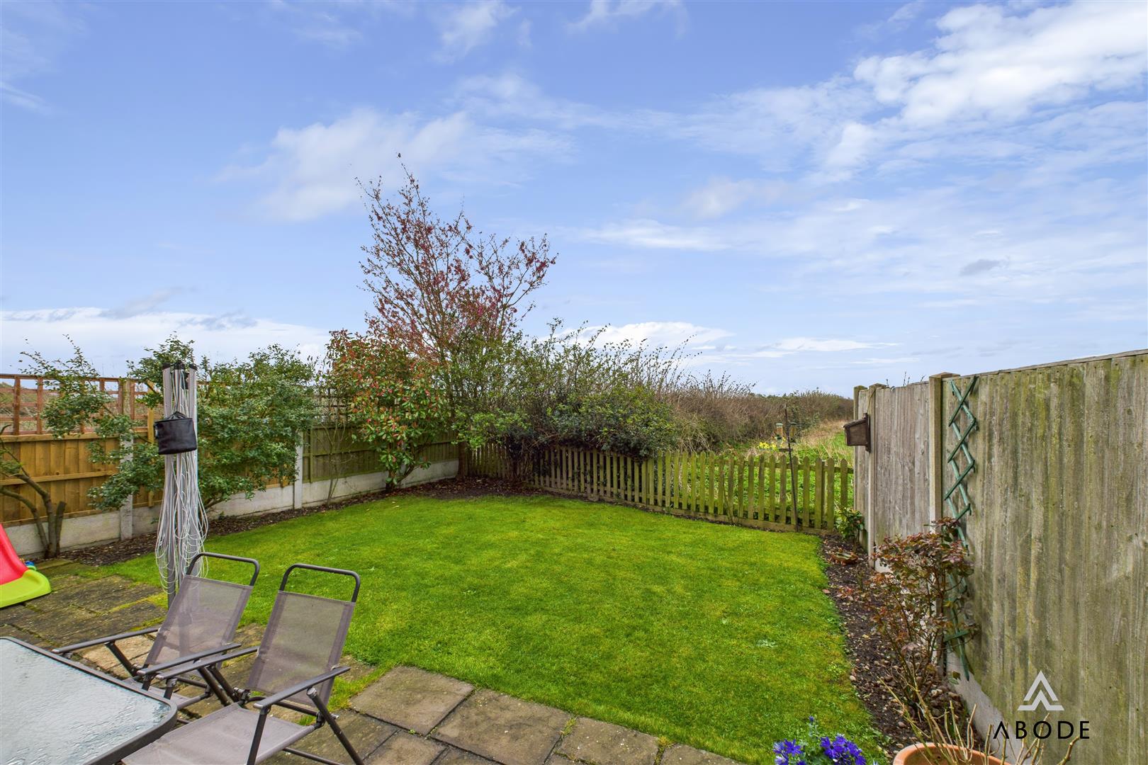 To the front of the property is a detached single garage with power and lighting, alongside a tarmac driveway offering off-street parking for multiple vehicles. The driveway leads to a storm porch with outside lighting. The rear garden is well maintained, mostly laid to lawn with a paved patio area, mature shrubs and bushes, an outside tap, and timber fencing to boundaries. The garden enjoys open views over neighbouring fields to the front and side.