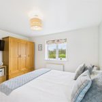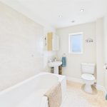 The landing provides access to all rooms on the first floor. The master bedroom has uPVC double glazed windows to the front and side elevations, a radiator, and a television point. The second bedroom offers loft access and a door to an en-suite comprising a shower cubicle with direct shower, pedestal hand wash basin, chrome heated towel rail, and extractor fan. The third bedroom is positioned to the rear elevation. The family bathroom includes a P-shaped panelled bath with shower over, a pedestal wash basin with mixer tap, a low-level WC, extractor fan, and chrome heated towel rail.