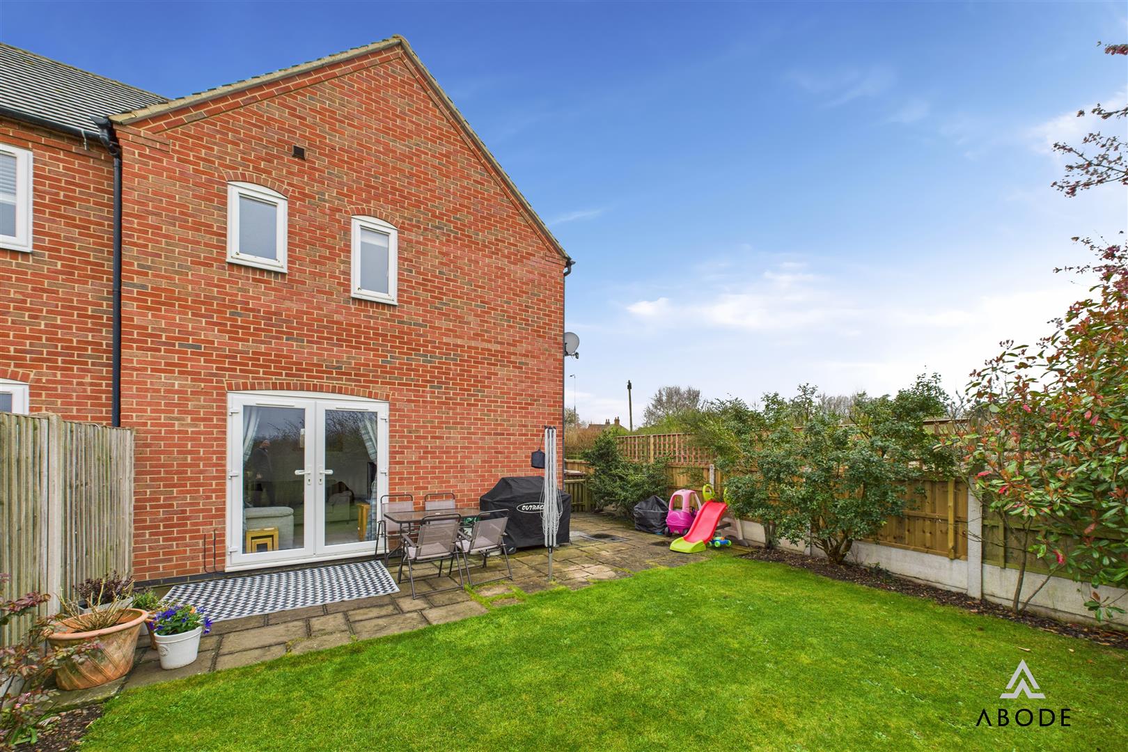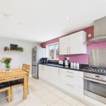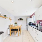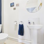 The accommodation opens with an entrance hallway which includes flooring, an under-stairs storage cupboard, and a staircase rising to the first floor. A cloakroom is located off the hall and features a low-level WC and pedestal hand wash basin with tiled splash back. The spacious lounge has French doors opening onto the rear garden and is a light and airy room. The modern kitchen diner is fitted with a range of wall, base and drawer units with a roll-top laminate work surface, tiled splash backs, and a composite sink with mixer tap. Integrated appliances include a stainless steel electric fan oven, stainless steel gas hob with cooker hood over, washing machine, and dishwasher, with additional space for an upright fridge freezer.