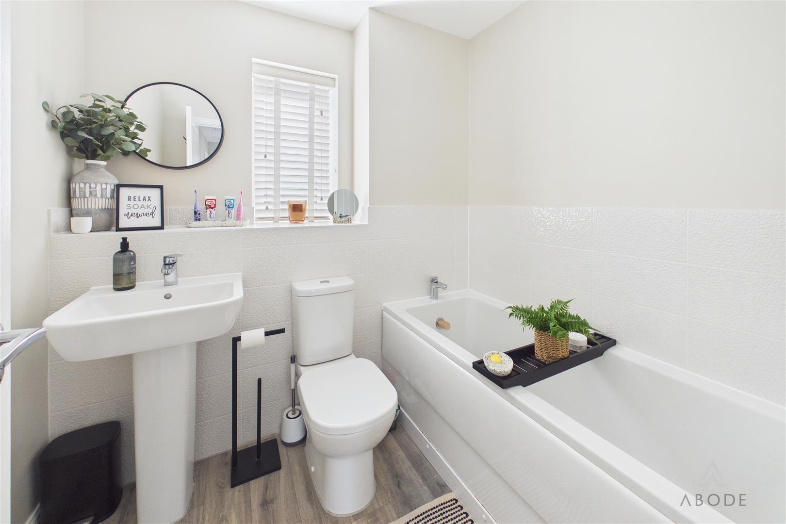 Panel enclosed bath, low flush wc, wash hand basin, radiator and upvc double glazed window