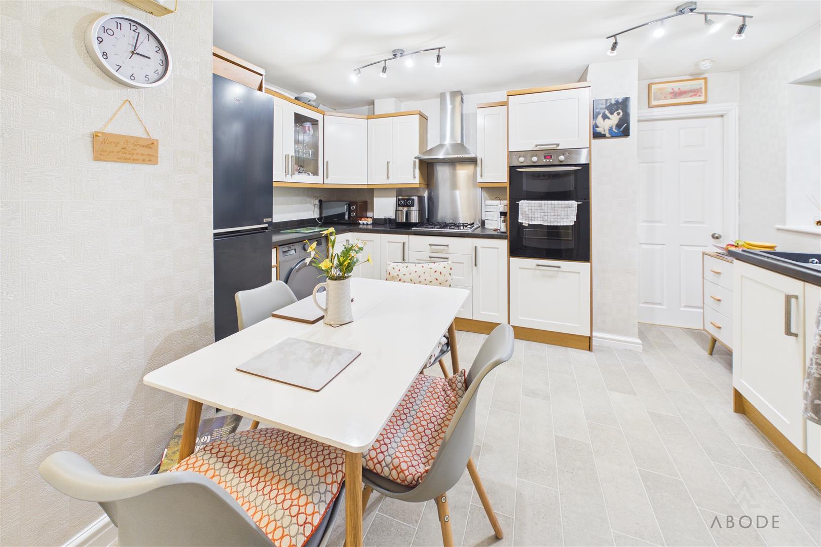 The kitchen diner is positioned to the front and forms part of the extension, creating a noticeably larger and more sociable space than typically found within properties of this style. Fitted with a range of wall and base units with preparation work surfaces over, the kitchen provides space for appliances and ample room for a dining table, making it ideal for everyday family living.